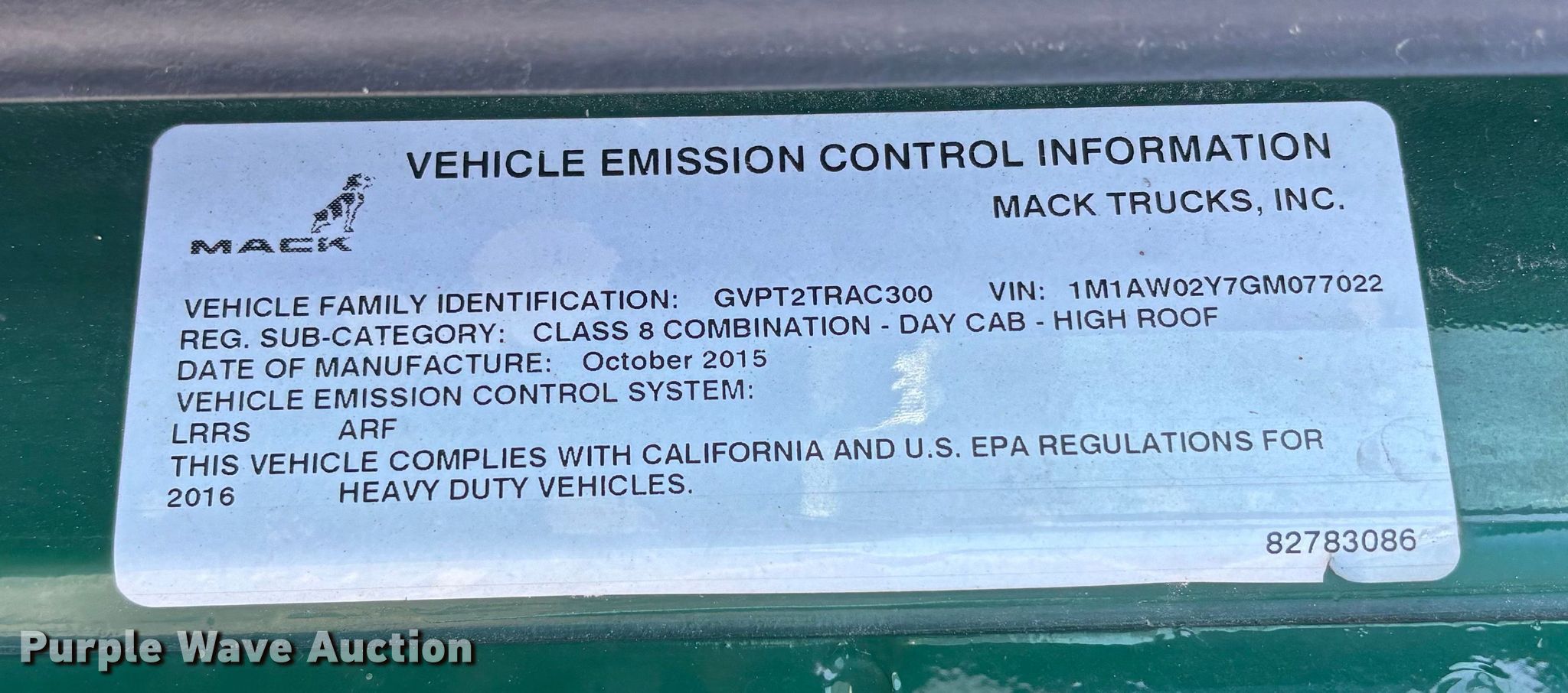 - VIN: 1M1AW02Y7GM077022