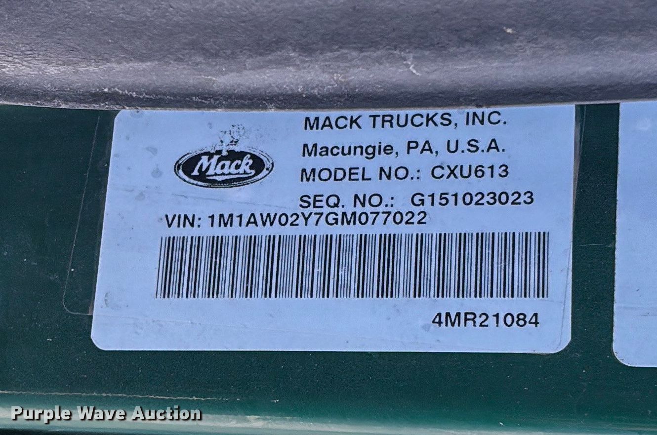 Purple Wave is selling a used Truck Tractor in Illinois. This item is a 2016 Mack CXU613 semi truck with the following: Miles: 509,335 on odometer, Hours: 18,311 on meter, VIN: 1M1AW02Y7GM077022, Unit #: 748
