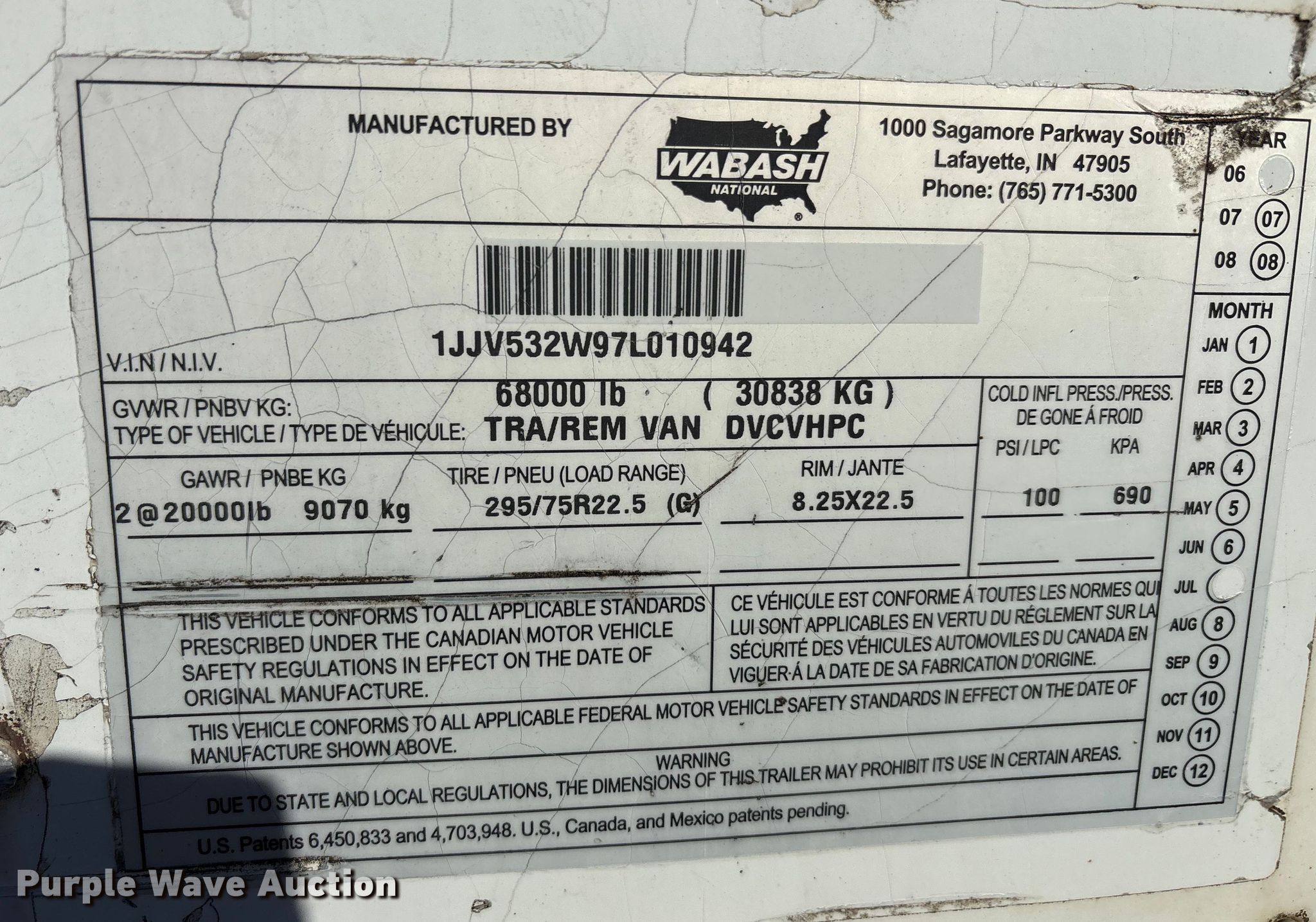 Purple Wave is selling a used Dry Van Trailer in Illinois. This item is a 2007 Wabash dry van trailer with the following: VIN: 1JJV532W97L010942, Unit #: 54128R