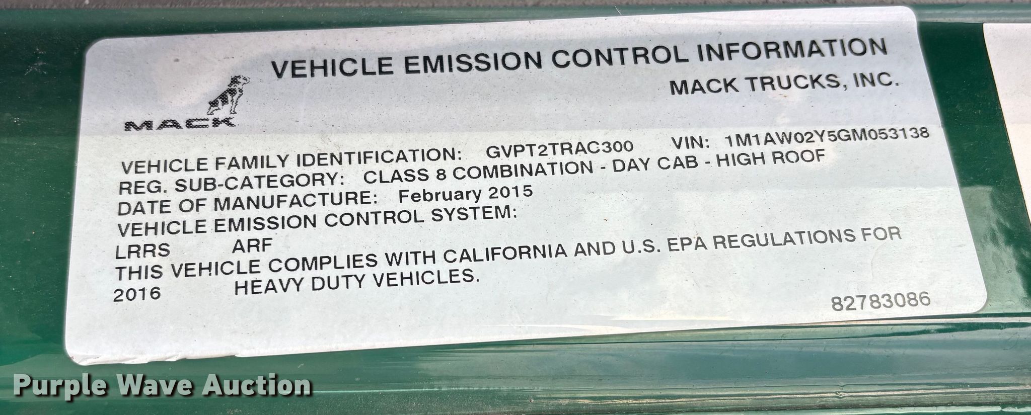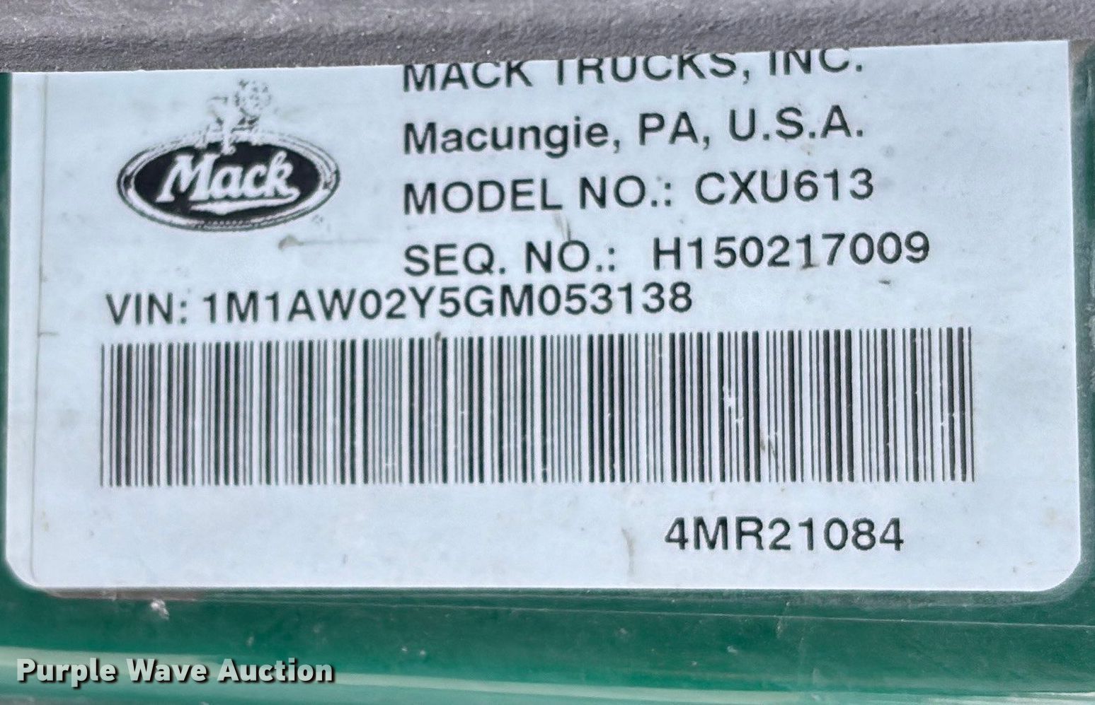 Purple Wave is selling a used Truck Tractor in Illinois. This item is a 2016 Mack CXU613 semi truck with the following: Miles: 516,686 on odometer, Hours: 17,189 on meter, VIN: 1M1AW02Y5GM053138