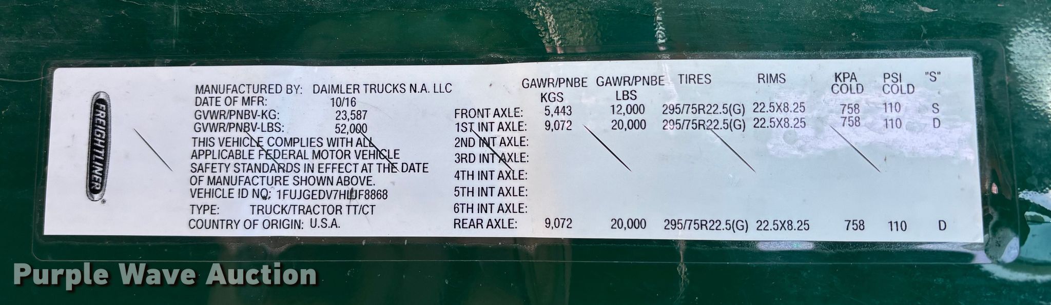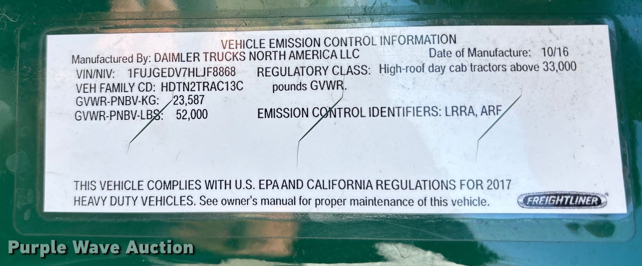 • VIN: 1FUJGEDV7HLJF8868