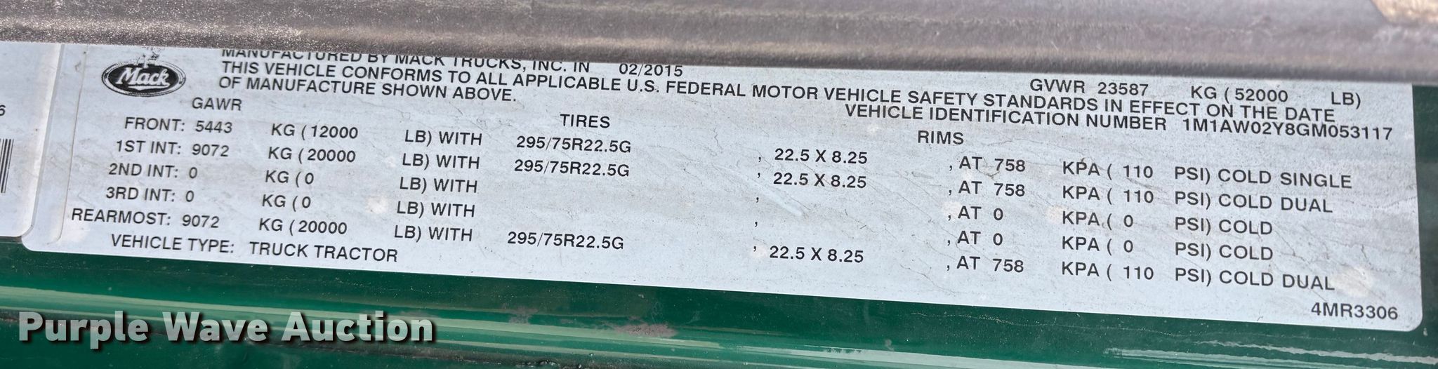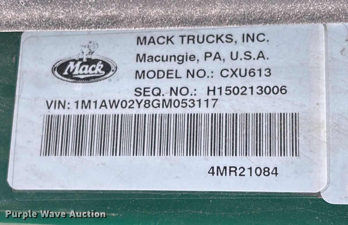 Purple Wave is selling a used Truck Tractor in Minnesota. This item is a 2016 Mack CXU613 semi truck with the following: Miles: 461,200 on odometer, Hours: 15,344 on meter, VIN: 1M1AW02Y8GM053117, Unit #: 684