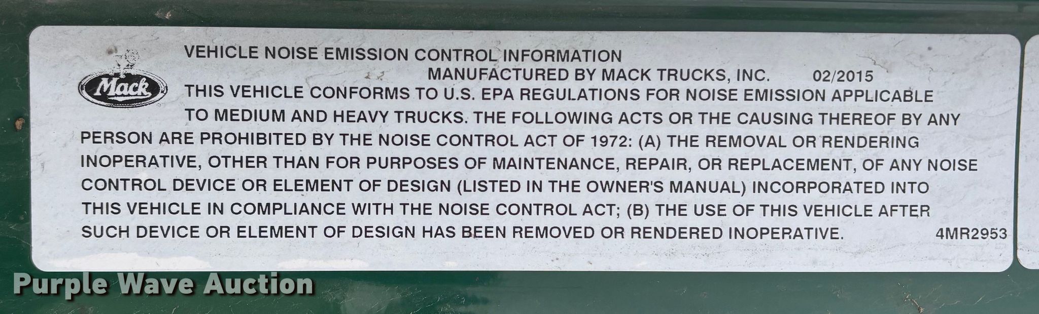 2016 Mack CXU613 semi truck. Miles: 461,200 on odometer, Hours: 15,344 on meter, VIN: 1M1AW02Y8GM053117, Unit #: 684. Engine Mack MP7, Serial: 570036, Displacement: 10.8L, Cylinders: 6, Fuel type: Diesel, HP: 395, Engine brake. Transmission Mack mDrive, Automated manual. Chassis Axles: Tandem, Differential lock: Inter-axle, Suspension: Air Dump valves, Brakes: Air, GVWR: 52,000 lbs FAWR: 12,000 lbs, IAWR: 20,000 lbs, RAWR: 20,000 lbs, Wheelbase: 174". Interior AC, Heat, Heated mirrors, Cruise control, Air ride cab, Brake controller. Features Deck plate: Aluminum, Fifth wheel type: Fixed, Fuel tank: Dual. Tires Size: 295/75R22.5. Notes Dash warning indicator: Check engine, ABS, ATC, Electrical fault, SCR system fault, EATS system fault, Jump start required during on-site data collection, Passenger side door handle issues, will not open from exterior, Engine in derate. Indiana title. Title distribution may be delayed up to 30 days from verification of funds. Standard Forwarding, LLC Strategic Fleet Realignment Sale. Owatonna, MN 55060