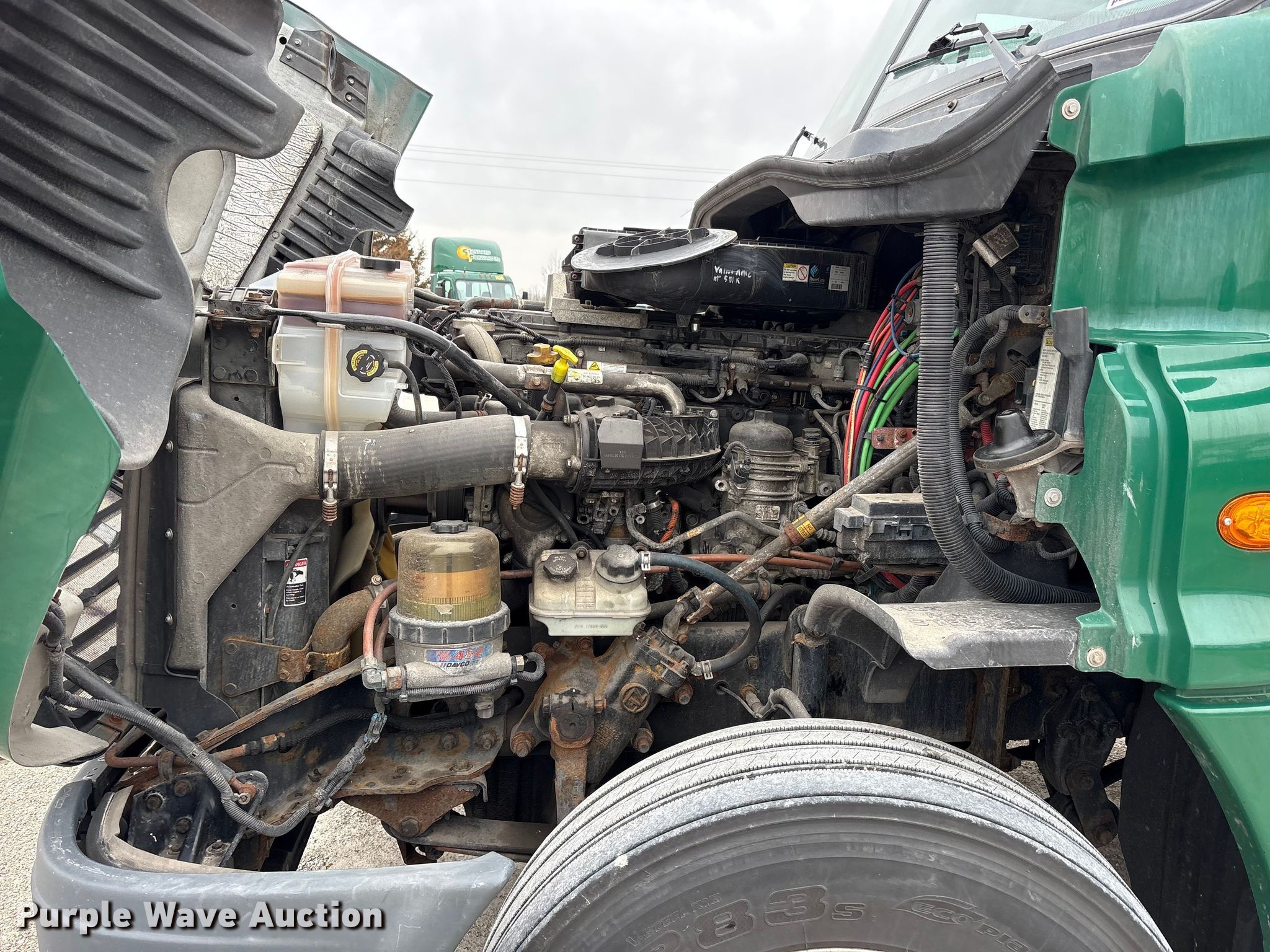 2017 Freightliner Cascadia 125 semi truck. Miles: 971,775 on odometer, Hours: 19,959 on meter, VIN: 1FUJGEDV5HLJA7983, Unit #: 1000. Engine Detroit Diesel DD13, Serial: 471928S0425806, Displacement: 12.8L, Cylinders: 6, Fuel type: Diesel, HP: 410, Engine brake. Transmission Detroit Diesel DT12-DB-1550 HD, Automated manual. Chassis Axles: Tandem, Gear ratio: 2.41, Differential lock: Inter-axle, Suspension: Air Dump valves, Brakes: Air, GVWR: 52,000 lbs FAWR: 12,000 lbs, IAWR: 20,000 lbs, RAWR: 20,000 lbs, Wheelbase: 174". Interior AC, Heat, Heated mirrors, Power windows, Cruise control, Air ride cab, Brake controller. Features Deck plate: Aluminum, Fifth wheel type: Fixed, Fuel tank: Dual. Tires Size: 295/75R22.5. Notes Dash warning indicator: Check engine, Jump start required during on-site data collection. Indiana title. Title distribution may be delayed up to 30 days from verification of funds. Standard Forwarding, LLC Strategic Fleet Realignment Sale. Crawfordsville, IN 47933