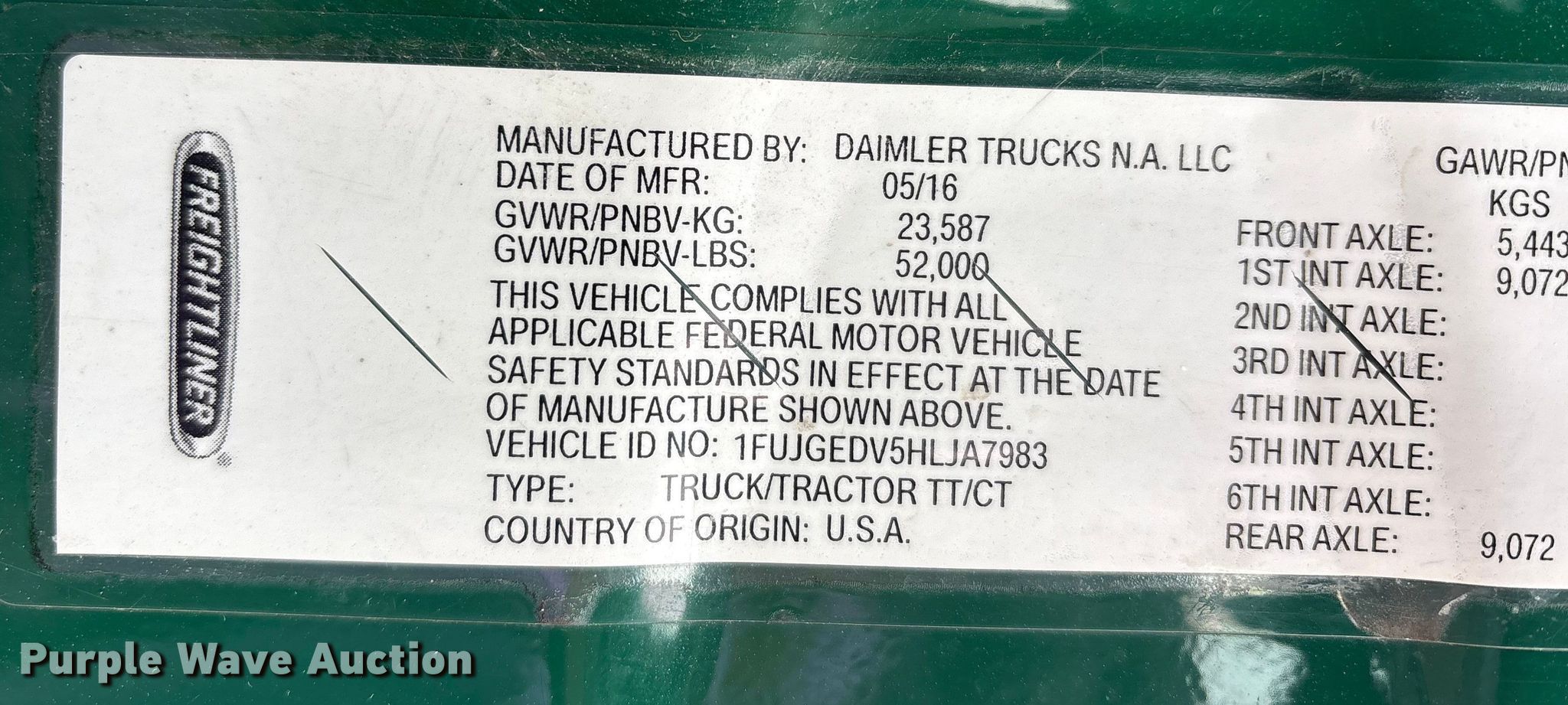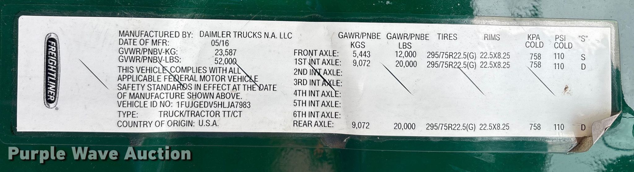 - VIN: 1FUJGEDV5HLJA7983