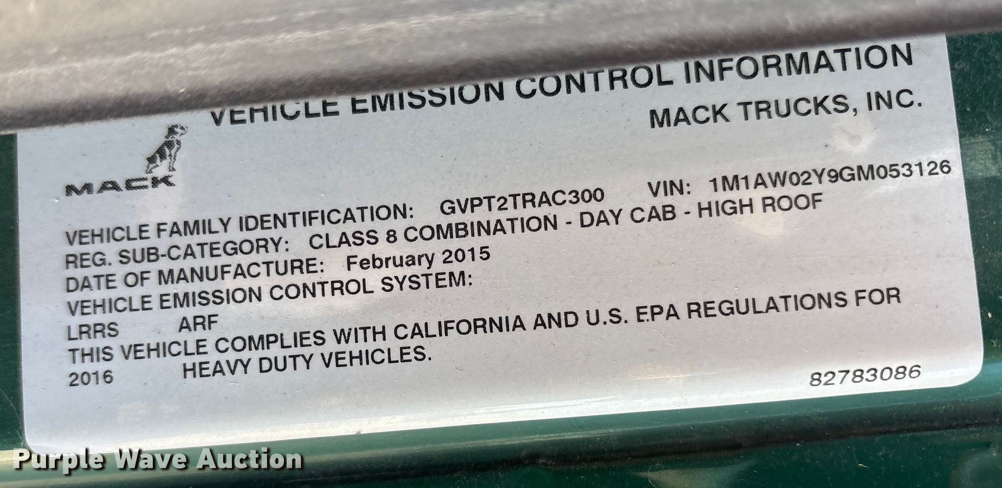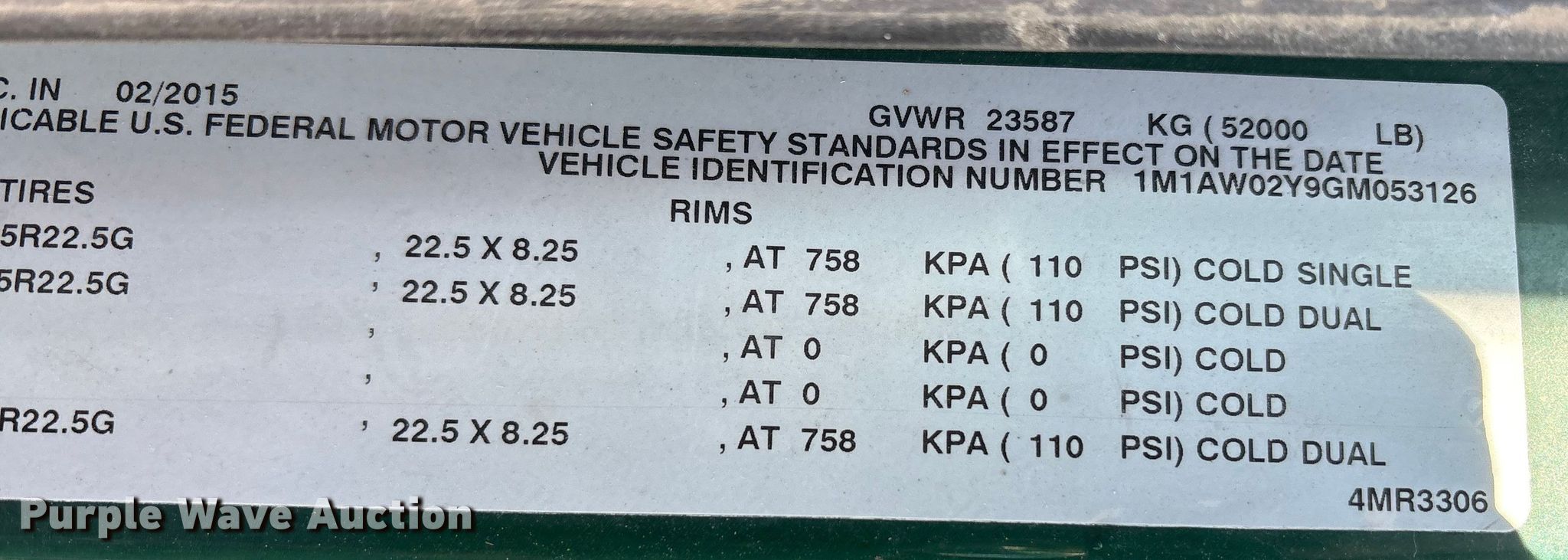 - VIN: 1M1AW02Y9GM053126