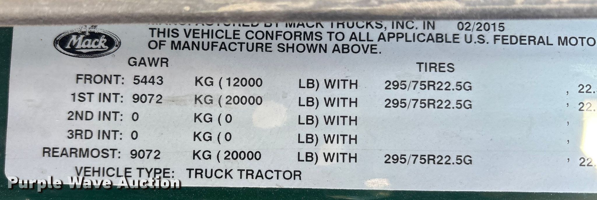 2016 Mack CXU semi truck. Miles: 579,135 on odometer, Hours: 18,537 on meter, VIN: 1M1AW02Y9GM053126, Unit #: 693. Engine Mack MP7, Serial: 570059, Displacement: 10.8L, Cylinders: 6, Fuel type: Diesel, HP: 395, Engine brake. Transmission Mack mDrive, Automated manual. Chassis Axles: Tandem, Differential lock: Inter-axle, Suspension: Air Dump valves, Brakes: Air, GVWR: 52,000 lbs FAWR: 12,000 lbs, IAWR: 20,000 lbs, RAWR: 20,000 lbs. Interior AC, Heat, Heated mirrors, Cruise control, Air ride cab. Features Deck plate: Aluminum, Fifth wheel type: Fixed, Fuel tank: Dual. Tires Size: 295/75R22.5. Notes Dash warning indicator: Check engine, Tires and wheels missing, Lug nuts loose, Flat tire. Indiana title. Title distribution may be delayed up to 30 days from verification of funds. Standard Forwarding, LLC Strategic Fleet Realignment Sale. Crawfordsville, IN 47933