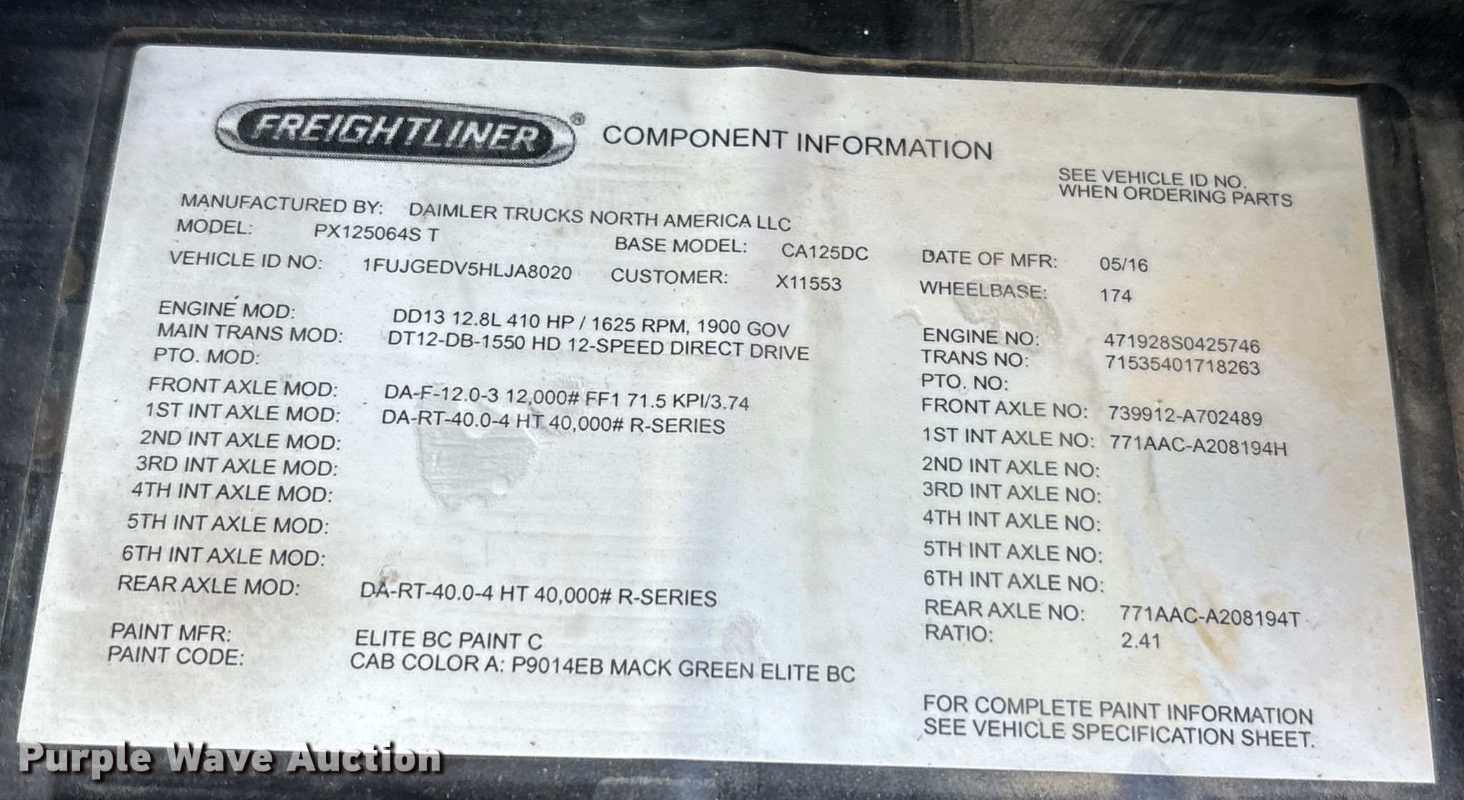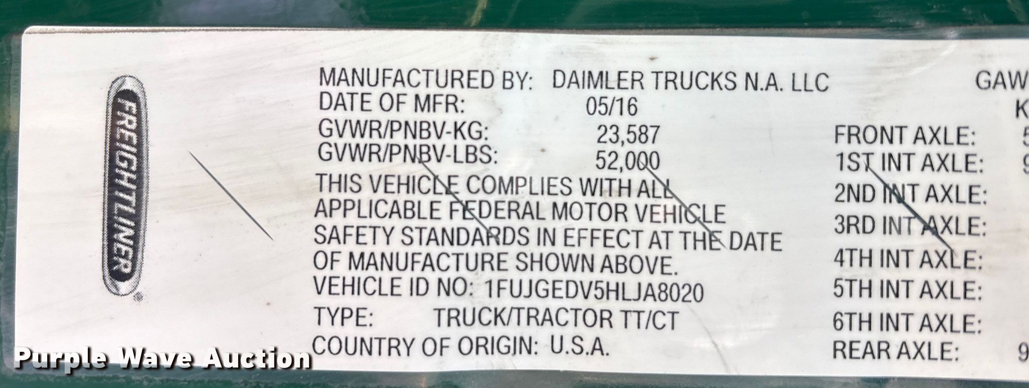 • VIN: 1FUJGEDV5HLJA8020