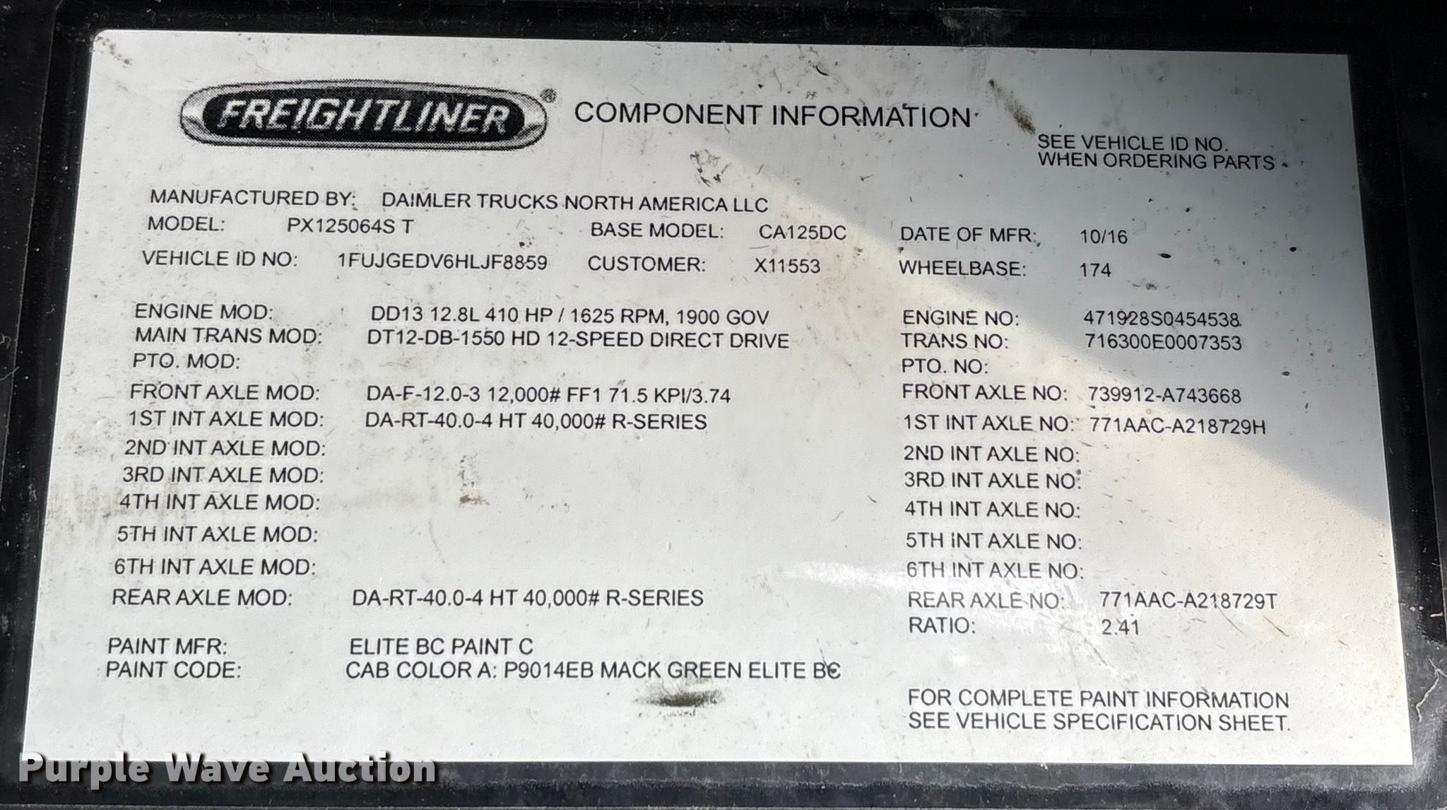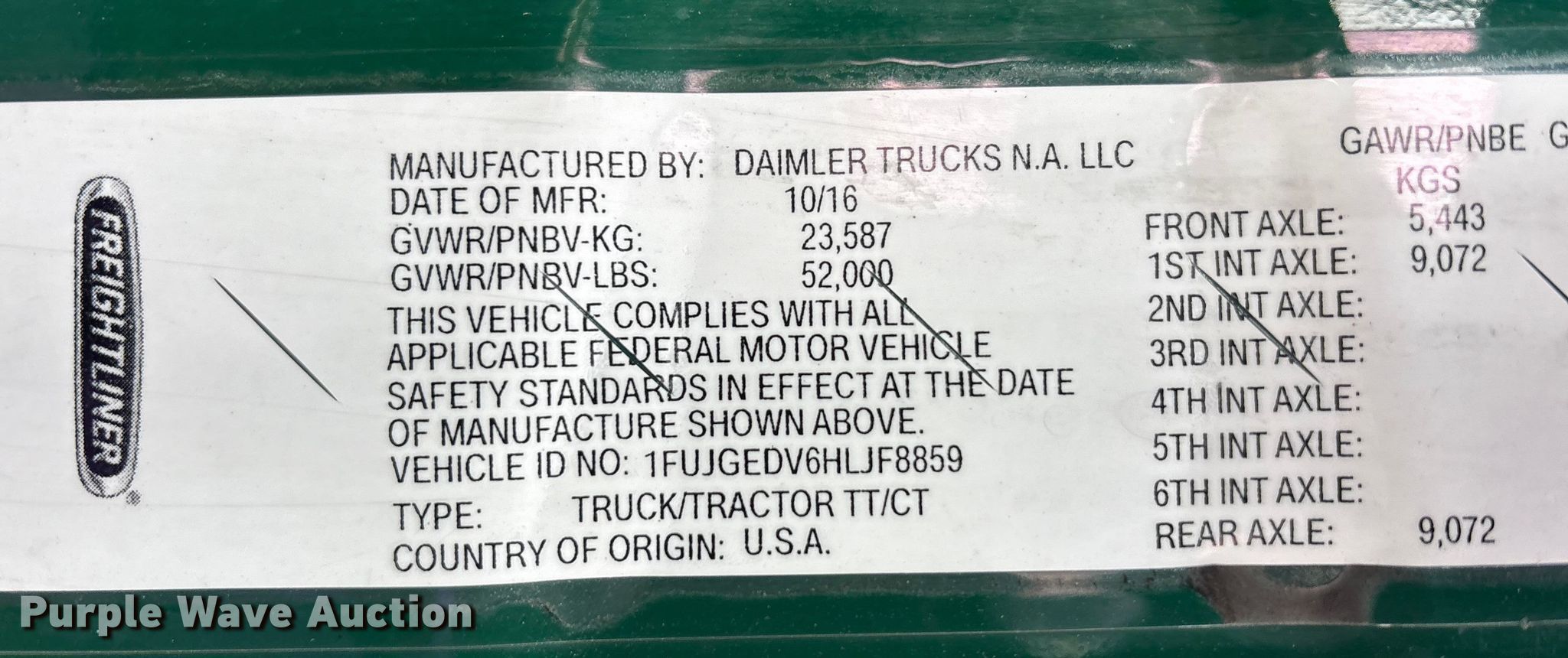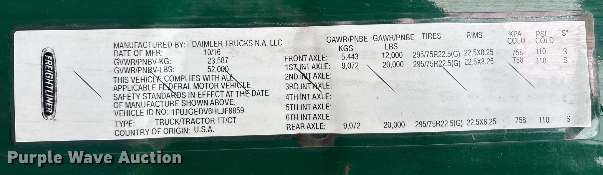 - VIN: 1FUJGEDV6HLJF8859