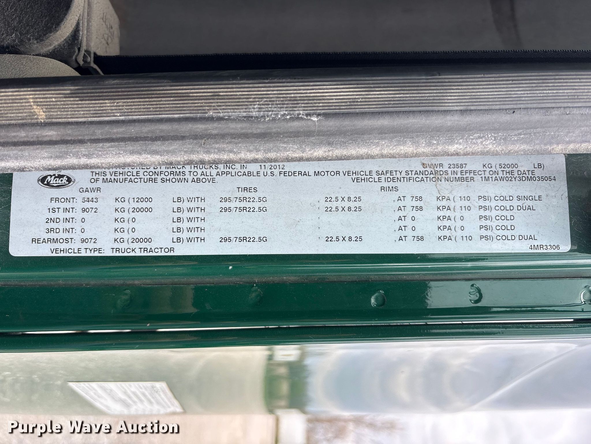 Purple Wave is selling a used Truck Tractor in Indiana. This item is a 2013 Mack CXU613 semi truck with the following: Miles: Unknown, VIN: 1M1AW02Y3DM035054