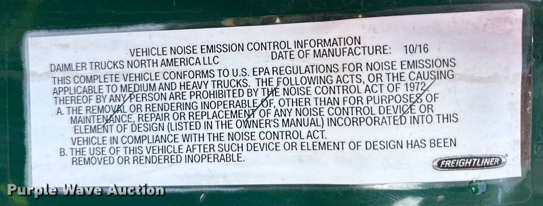 2017 Freightliner Cascadia 125 semi truck. Miles: 920,047 on odometer, VIN: 1FUJGEDVXHLJF8864, Unit #: 1073, Lot #: 77351975. Engine Detroit Diesel DD13, Displacement: 12.8L, Cylinders: 6, Fuel type: Diesel, Engine brake. Transmission Automated manual. Chassis Axles: Tandem, Differential lock: Inter-axle, Suspension: Air, Brakes: Air, GVWR: 52,000 lbs. Interior AC, Heat, Heated mirrors, Power windows, Cruise control, Air ride cab. Features Deck plate: Aluminum, Fifth wheel type: Fixed, Fuel tank: Dual. Tires Size: 295/75R22.5. Notes Dash warning indicator: Check engine, Jump start required during on-site data collection, Key not included. Fleet realignment, stored at a secured facility. Please review REQUIRED REMOVAL INSTRUCTIONS. Titles will be distributed after confirmation of payment and removal. Indiana title. Title distribution may be delayed up to 30 days from verification of funds. Standard Forwarding, LLC Strategic Fleet Realignment Sale. Big Lake, MN 55309