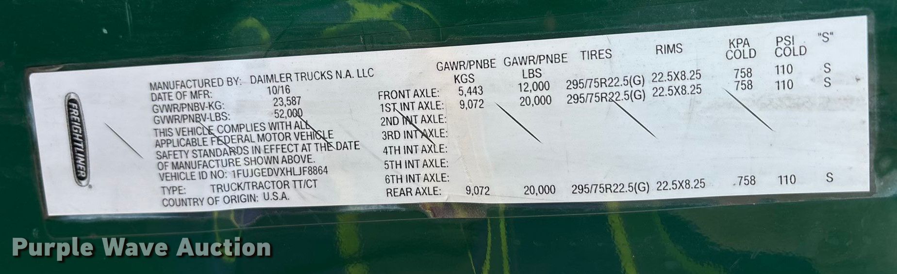 Purple Wave is selling a used Truck Tractor in Minnesota. This item is a 2017 Freightliner Cascadia 125 semi truck with the following: Miles: 920,047 on odometer, VIN: 1FUJGEDVXHLJF8864, Unit #: 1073, Lot #: 77351975