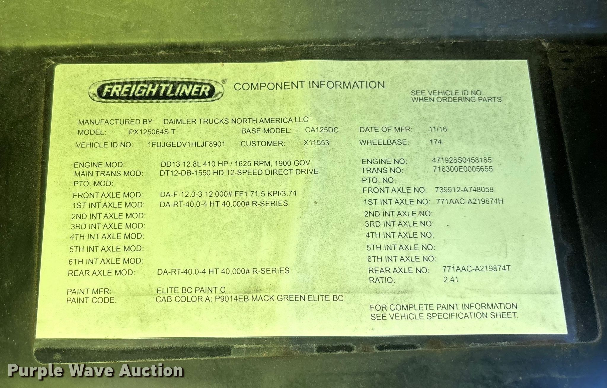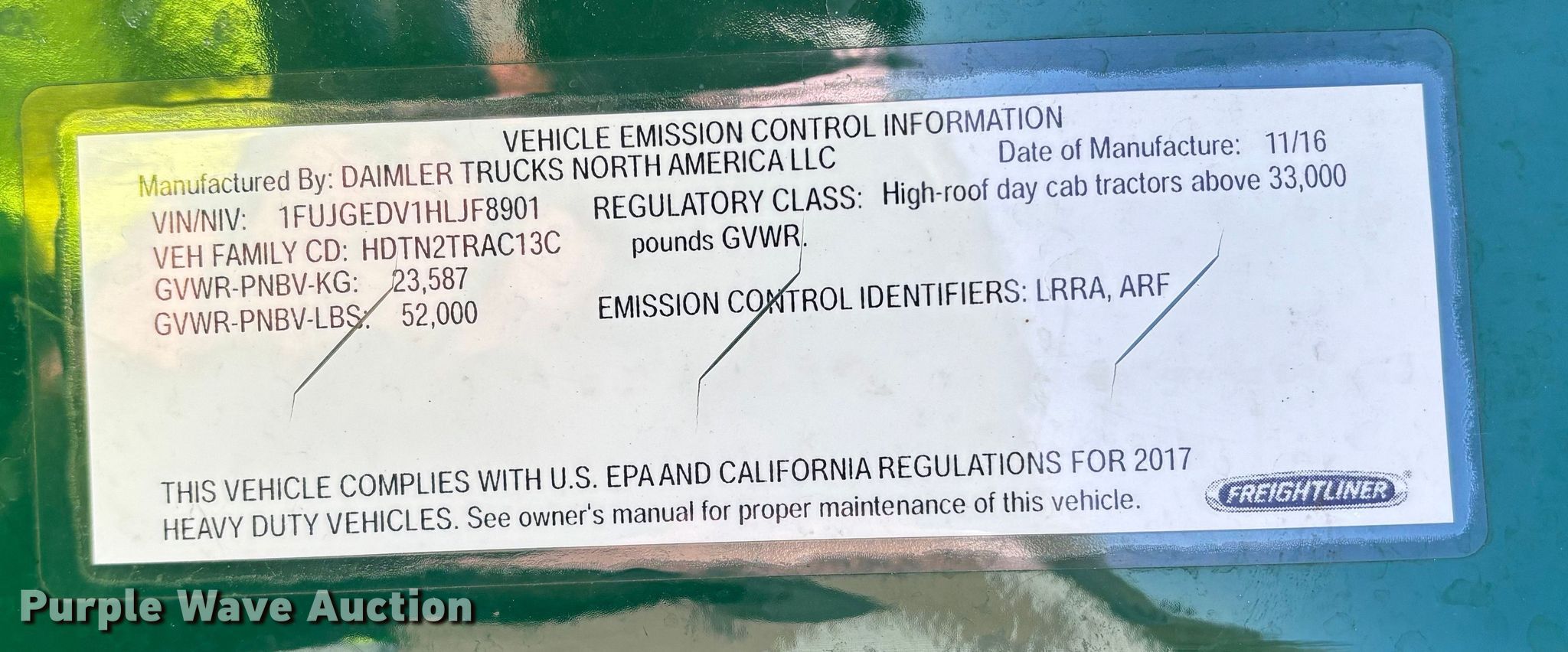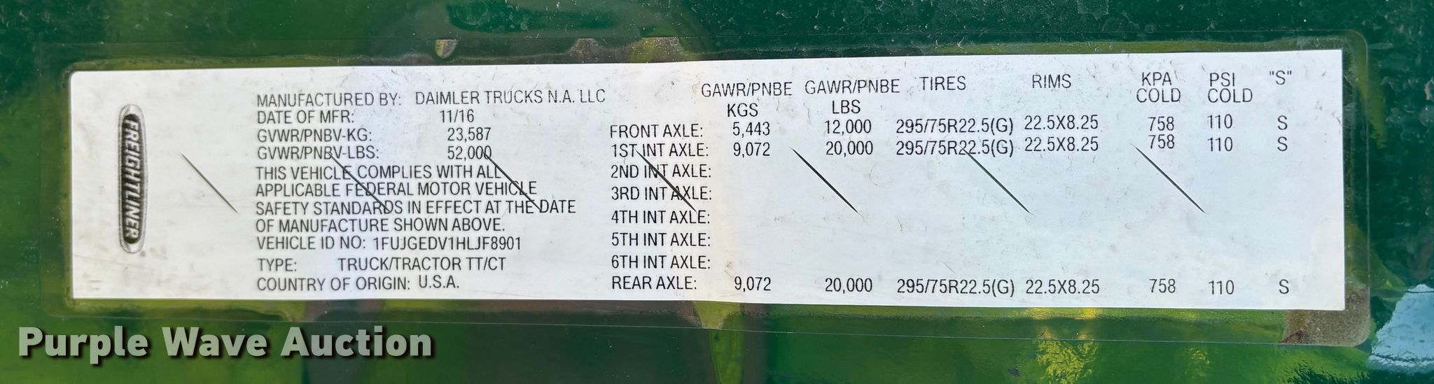 - VIN: 1FUJGEDV1HLJF8901