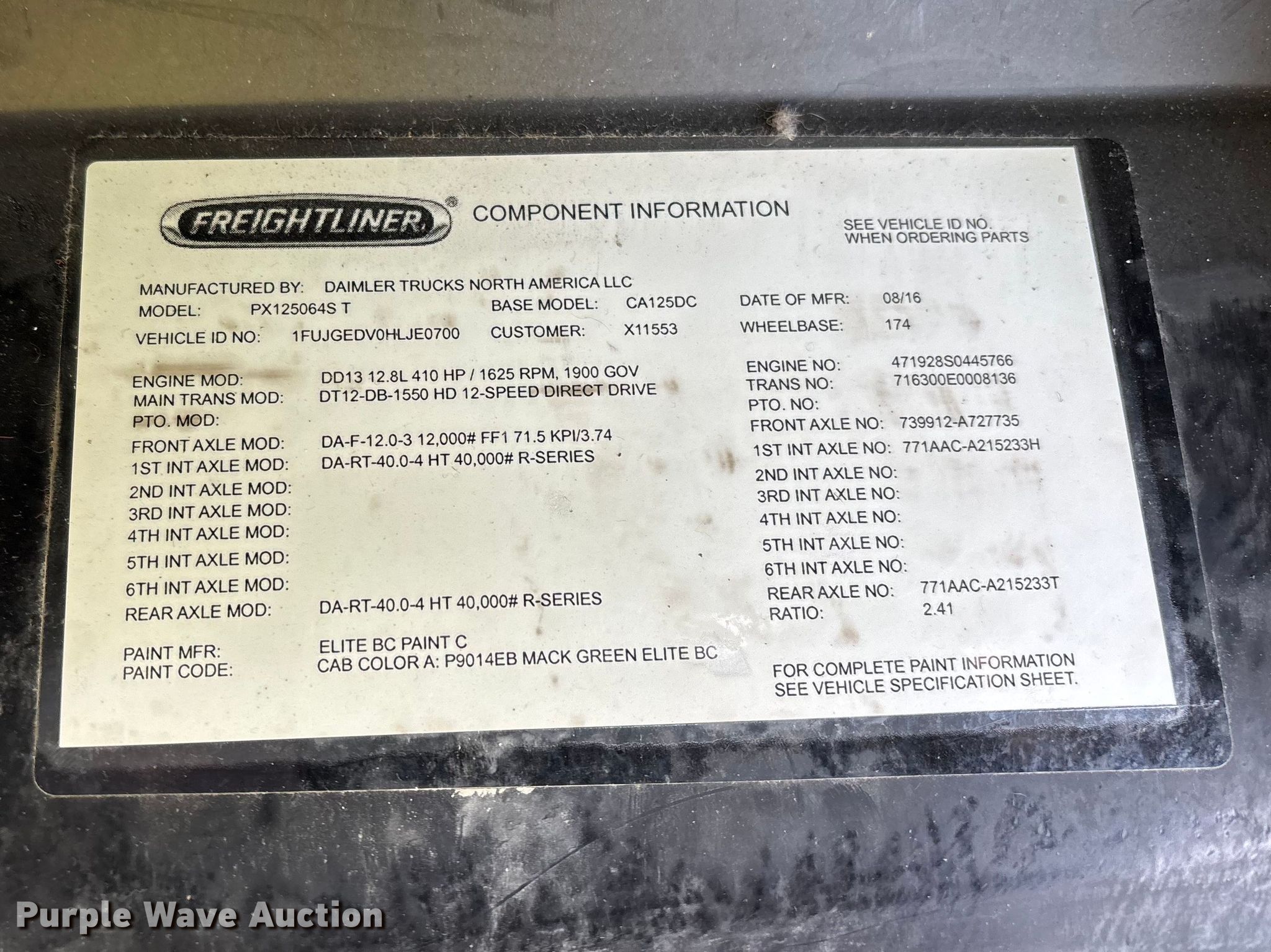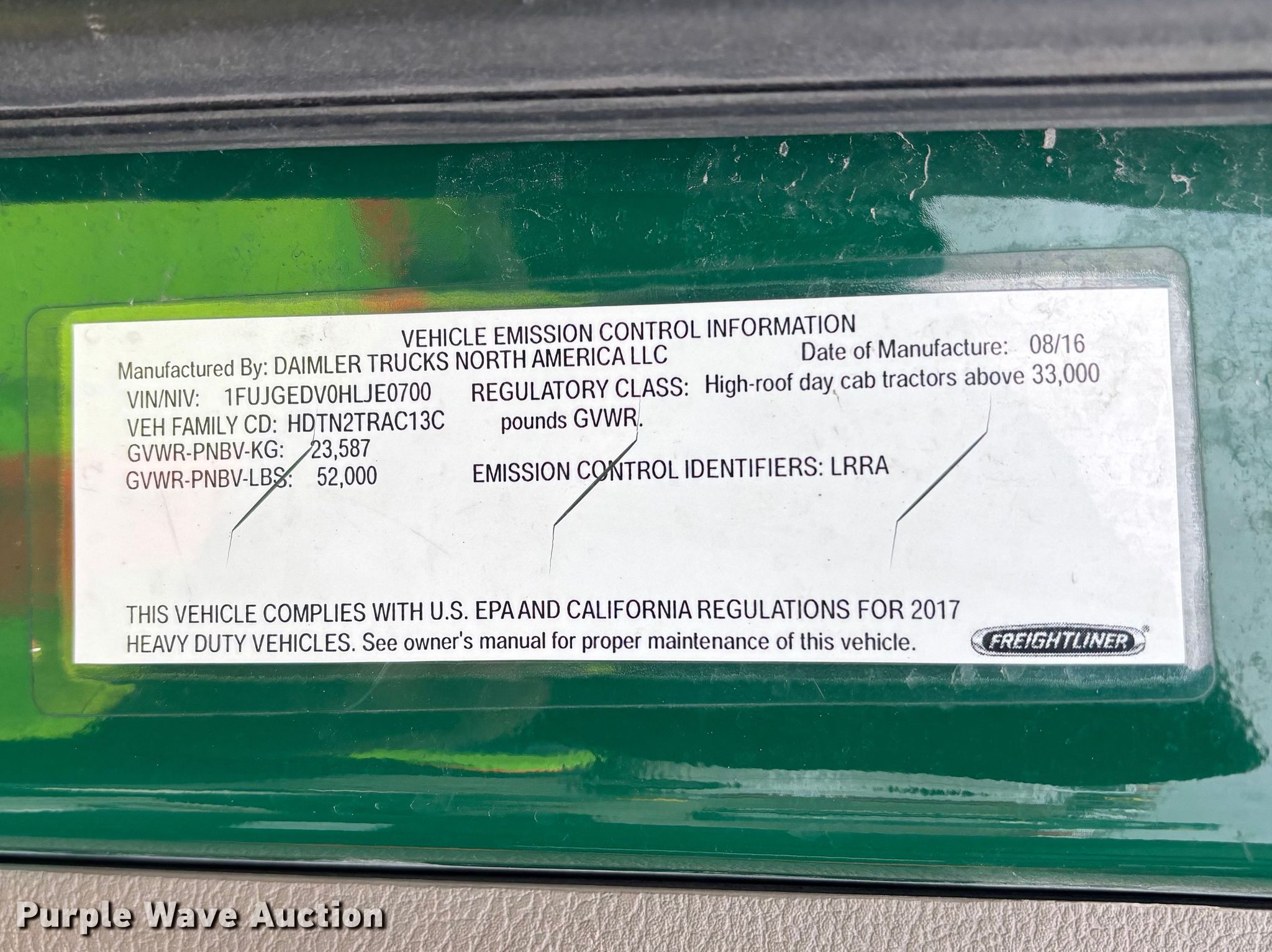 - VIN: 1FUJGEDV0HLJE0700