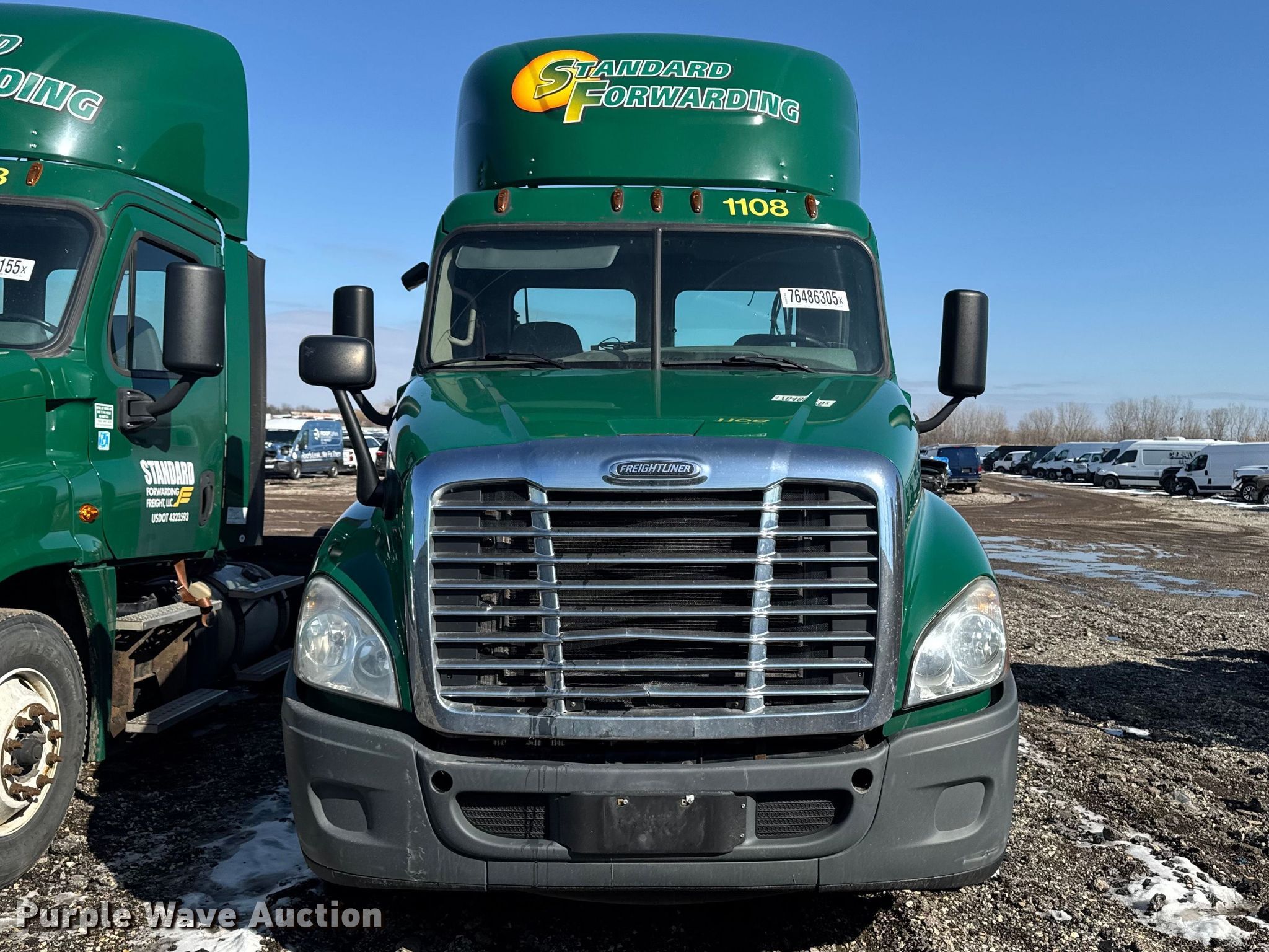 2017 Freightliner Cascadia 125 semi truck. Miles: 1,015,175 on odometer, VIN: 1FUJGEDV7HLJF8899, Unit #: 1108. Engine Detroit Diesel DD13, Displacement: 12.8L, Cylinders: 6, Fuel type: Diesel, Engine brake. Transmission Detroit DT12-DB-1550HD, Automated manual. Chassis Axles: Tandem, Gear ratio: 2.41, Differential lock: Inter-axle, Suspension: Air, Brakes: Air, Truck chassis: 156", GVWR: 52,000 lbs FAWR: 12,000 lbs, IAWR: 20,000 lbs, RAWR: 20,000 lbs, Wheelbase: 174". Interior AC, Heat, Heated mirrors, Power windows, Power locks, Cruise control, Air ride cab. Features Deck plate: Aluminum, Fifth wheel type: Fixed, Fuel tank: Dual. Tires Size: 295/75R22.5. Notes Unit must be towed or hauled , Non-operational unit. Fleet realignment, stored at a secured facility. Please review REQUIRED REMOVAL INSTRUCTIONS. Titles will be distributed after confirmation of payment and removal. Indiana title. Title distribution may be delayed up to 30 days from verification of funds. Standard Forwarding, LLC Strategic Fleet Realignment Sale. Elgin, IL 60120