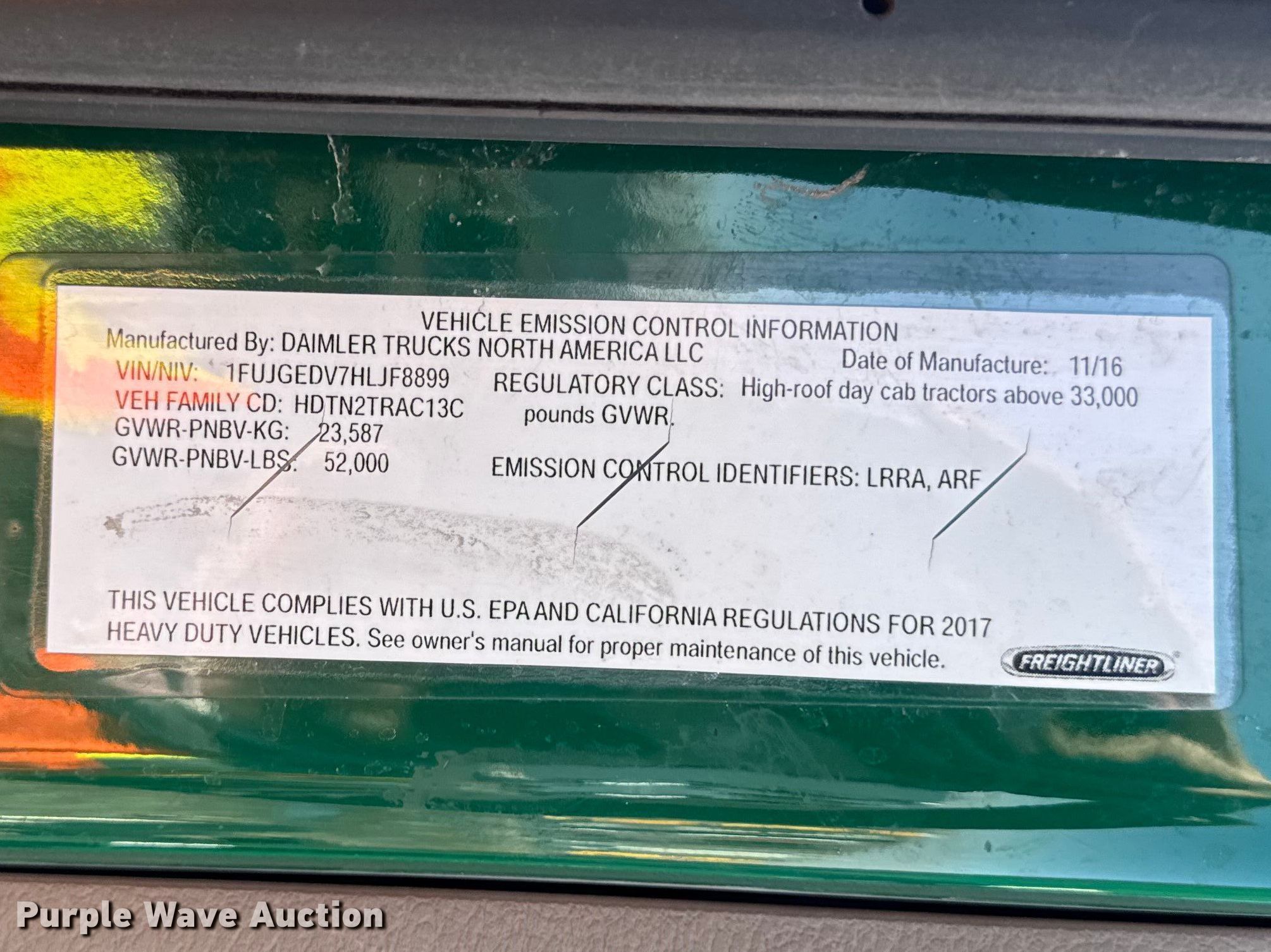- VIN: 1FUJGEDV7HLJF8899
