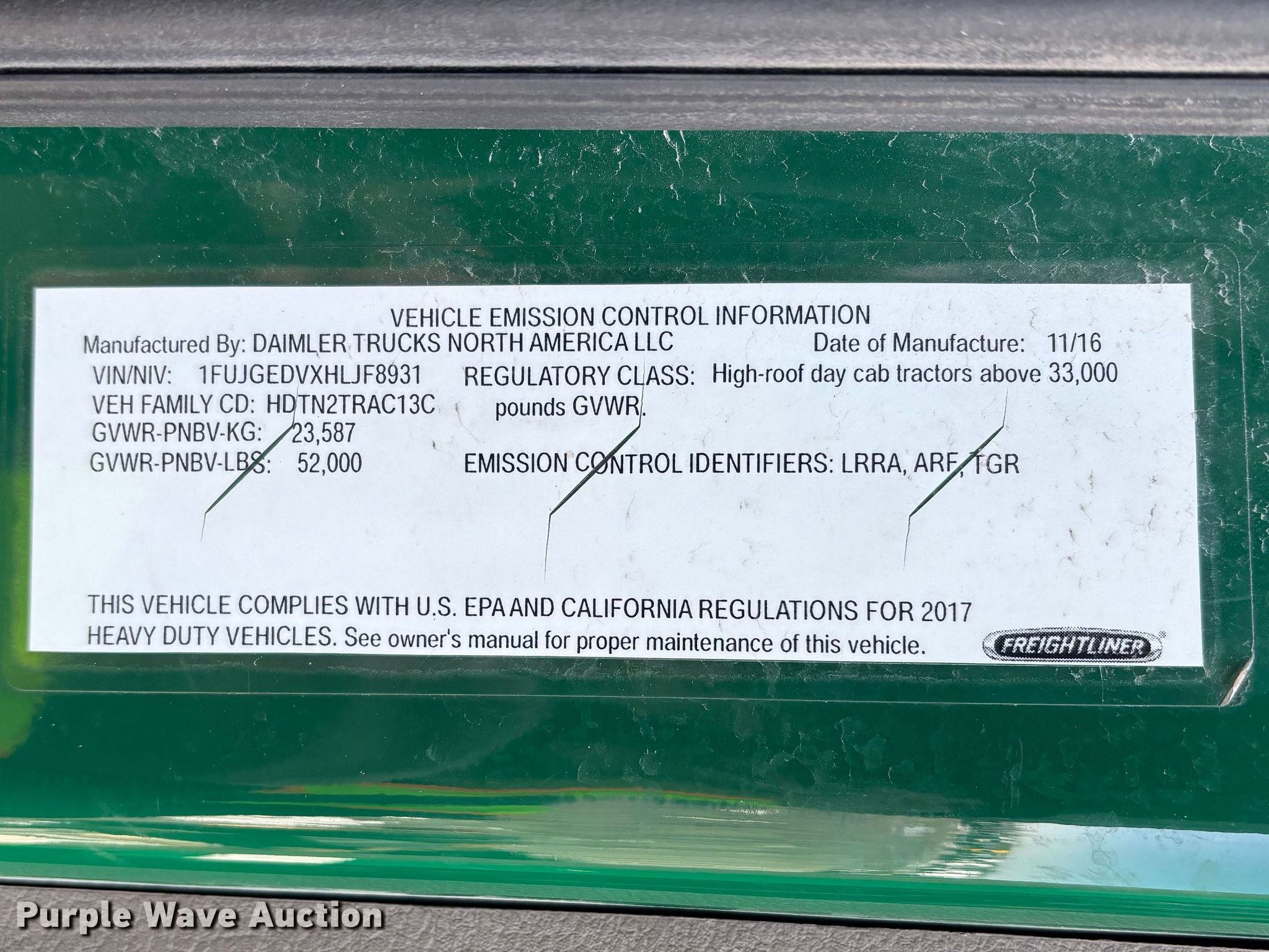 - VIN: 1FUJGEDVXHLJF8931