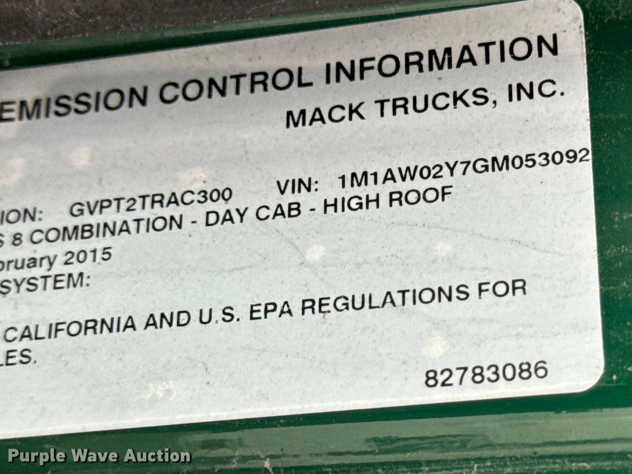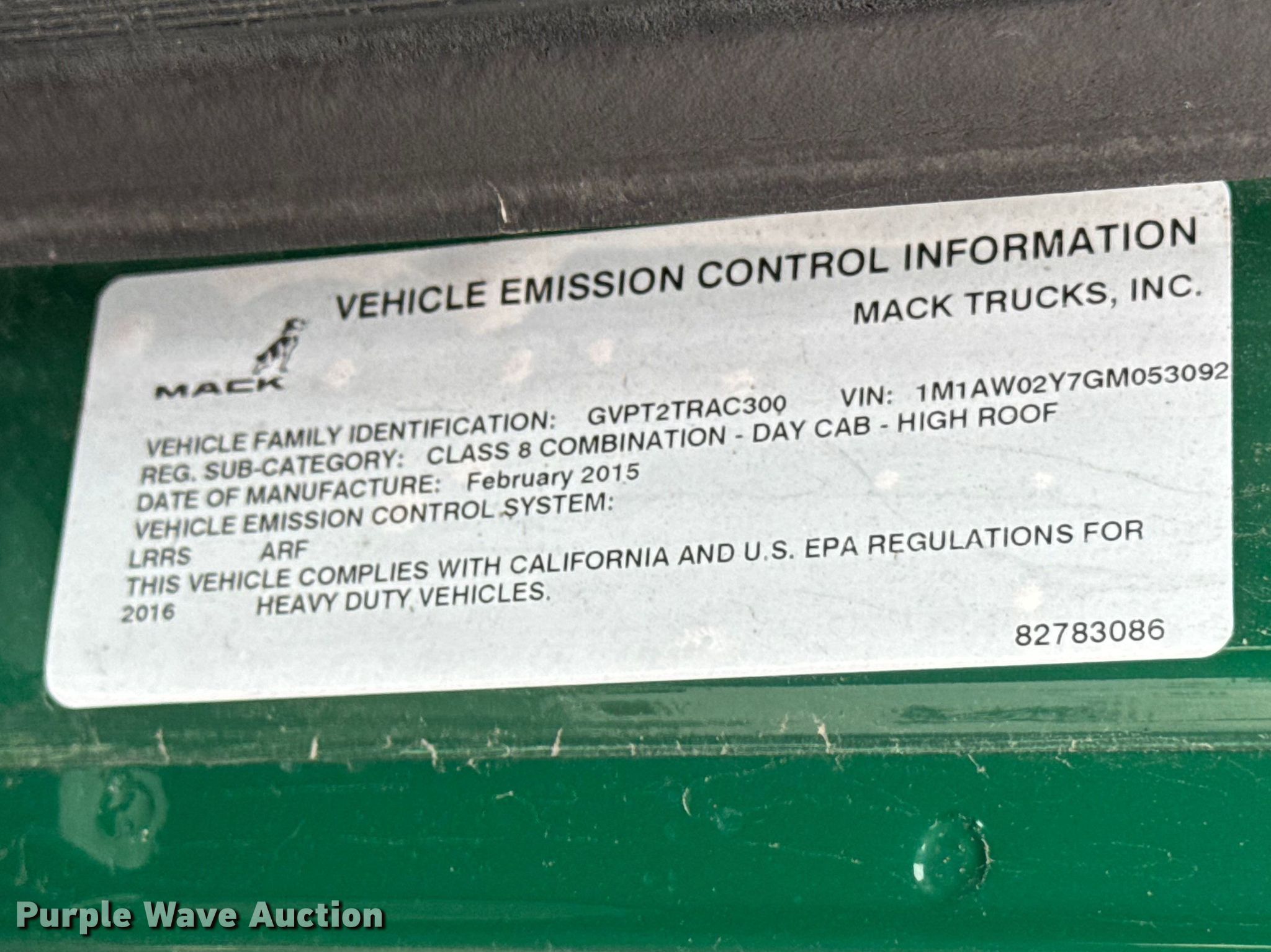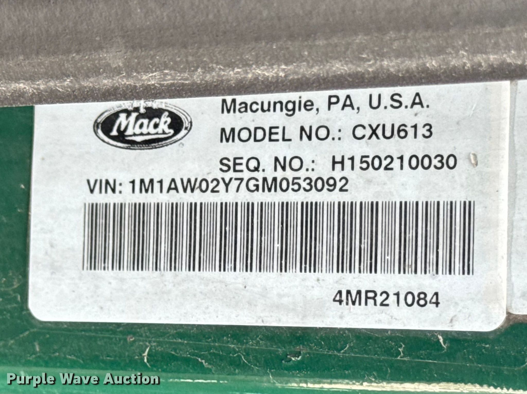 Purple Wave is selling a used Truck Tractor in Wisconsin. This item is a 2016 Mack CXU613 semi truck with the following: Miles: 296,643 on odometer, Hours: 11,503 on meter, VIN: 1M1AW02Y7GM053092, Unit #: 659, Lot #: 77083825