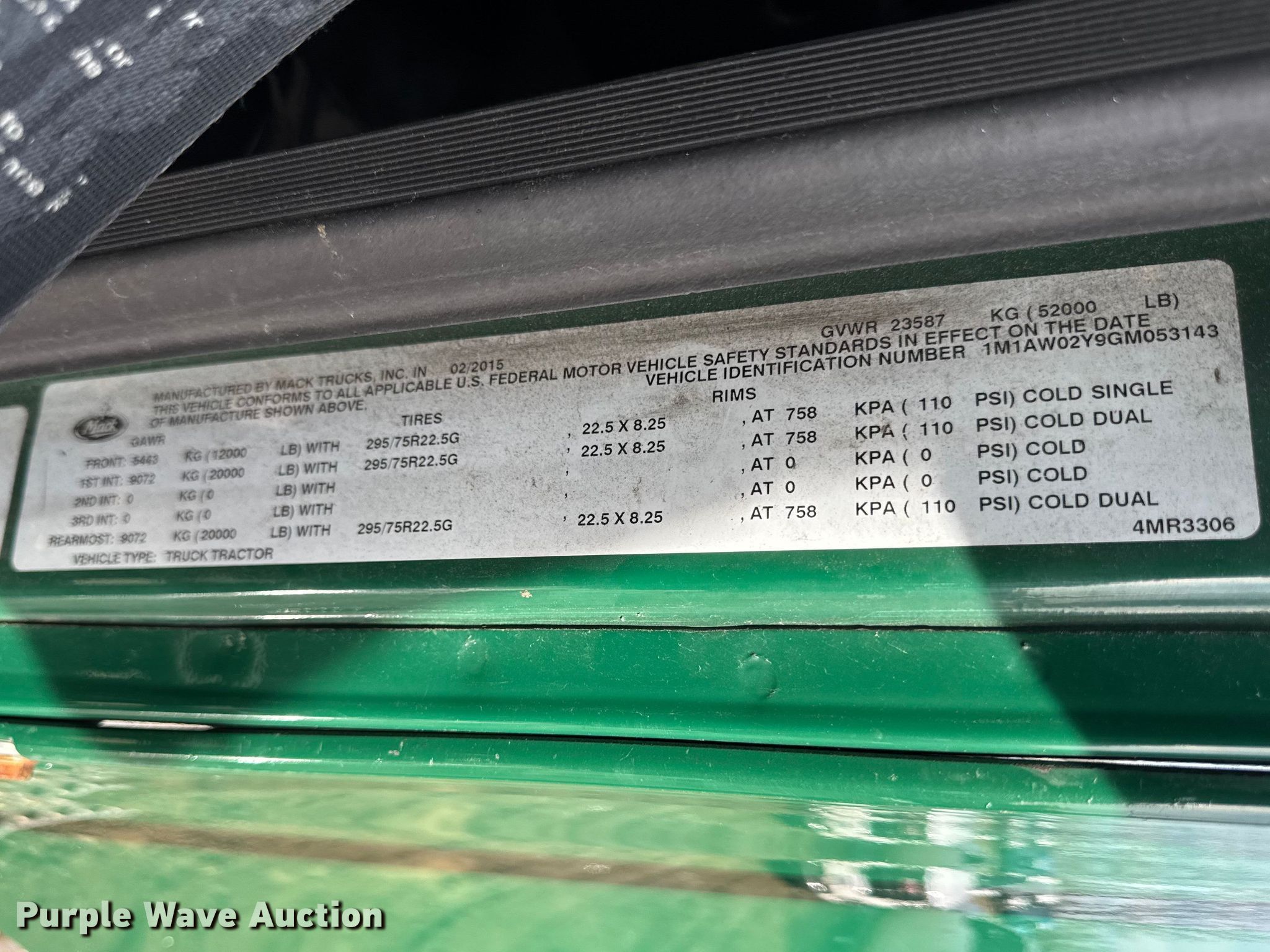 Purple Wave is selling a used Truck Tractor in Wisconsin. This item is a 2016 Mack CXU613 semi truck with the following: Miles: 305,314 on odometer, Hours: 14,455 on meter, VIN: 1M1AW02Y9GM053143, Unit #: 710, Lot #: 77085765