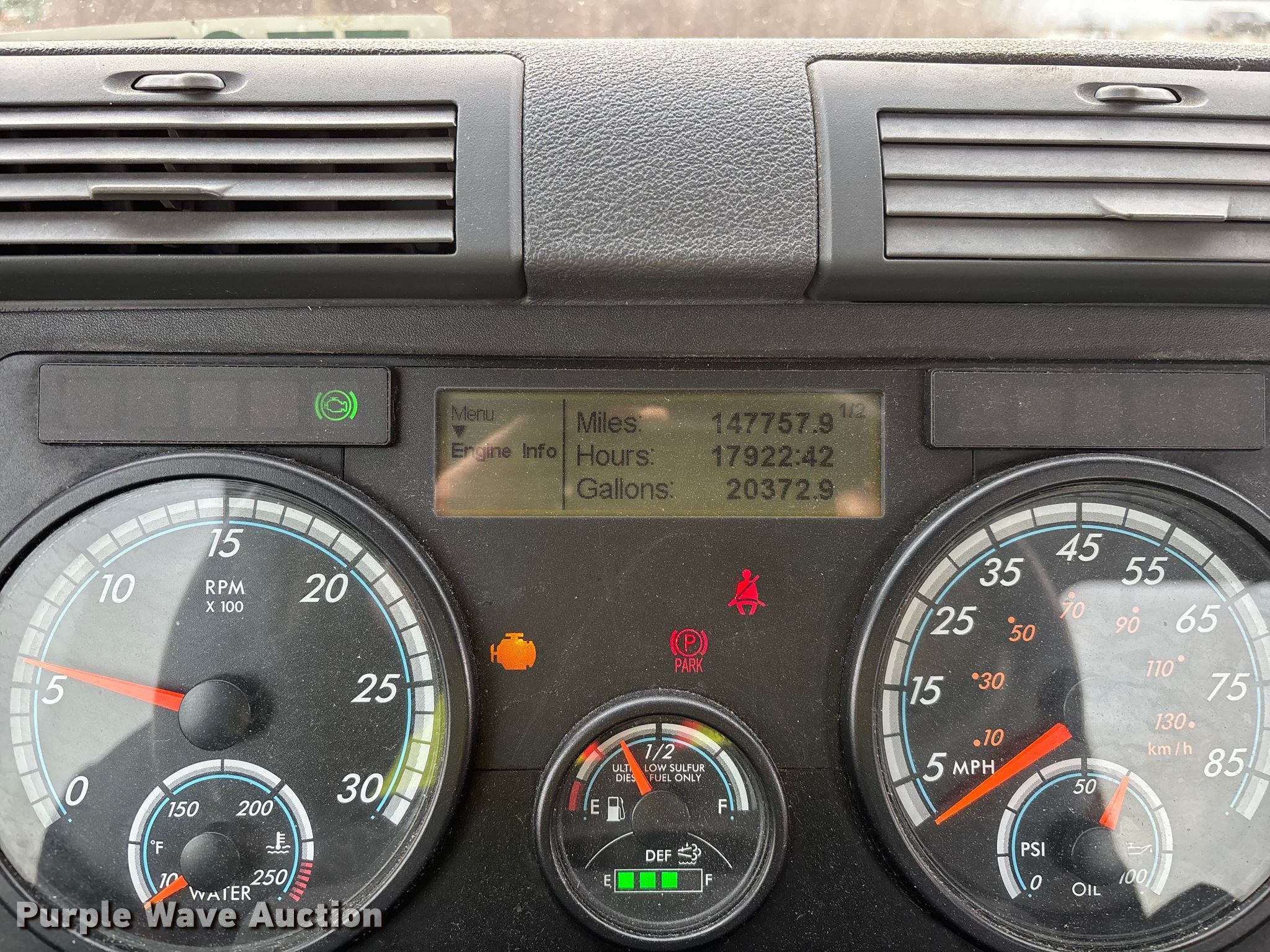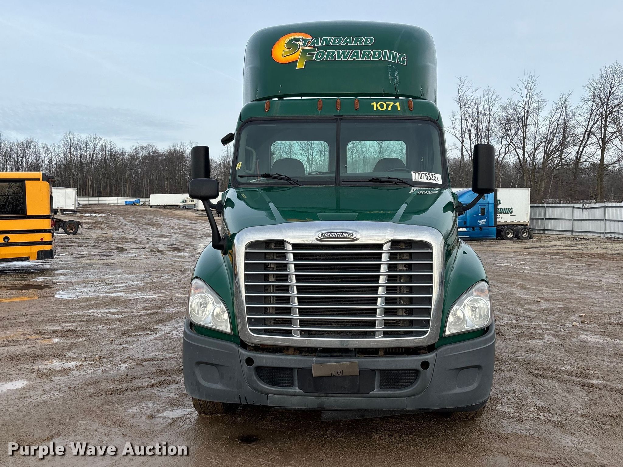 2017 Freightliner Cascadia 125 semi truck. Miles: 779,383 on odometer, Hours: 17,922 on meter, VIN: 1FUJGEDV6HLJF8862, Unit #: 1071, Lot #: 77076325. Engine Detroit Diesel DD13, Displacement: 12.8L, Cylinders: 6, Fuel type: Diesel, HP: 410, Engine brake. Transmission Detroit DT12-DB-1550, Automated manual, Speed: 12. Chassis Axles: Tandem, Gear ratio: 2.41, Differential lock: Inter-axle, Suspension: Air Dump valves, Brakes: Air, GVWR: 52,000 lbs FAWR: 12,000 lbs, IAWR: 20,000 lbs, RAWR: 20,000 lbs, Wheelbase: 174". Interior AC, Heat, Heated mirrors, Power windows, Cruise control, Air ride cab, Auxiliary controls, Brake controller. Features Deck plate: Steel, Fifth wheel type: Fixed, Fuel tank: Dual. Tires Size: 295/75R22.5. Notes Dash warning indicator: Check engine, Dash warning indicator: ATS Elect System SPN 3597, Electrical System SPN 164, HVAC SPN 1548, Jump start required during on-site data collection. Fleet inventory reduction, stored at a secured facility. Please review REQUIRED REMOVAL INSTRUCTIONS. Titles will be distributed after confirmation of payment and removal. Indiana title. Title distribution may be delayed up to 30 days from verification of funds. Standard Forwarding, LLC Strategic Fleet Realignment Sale. Milwaukee, WI 53224