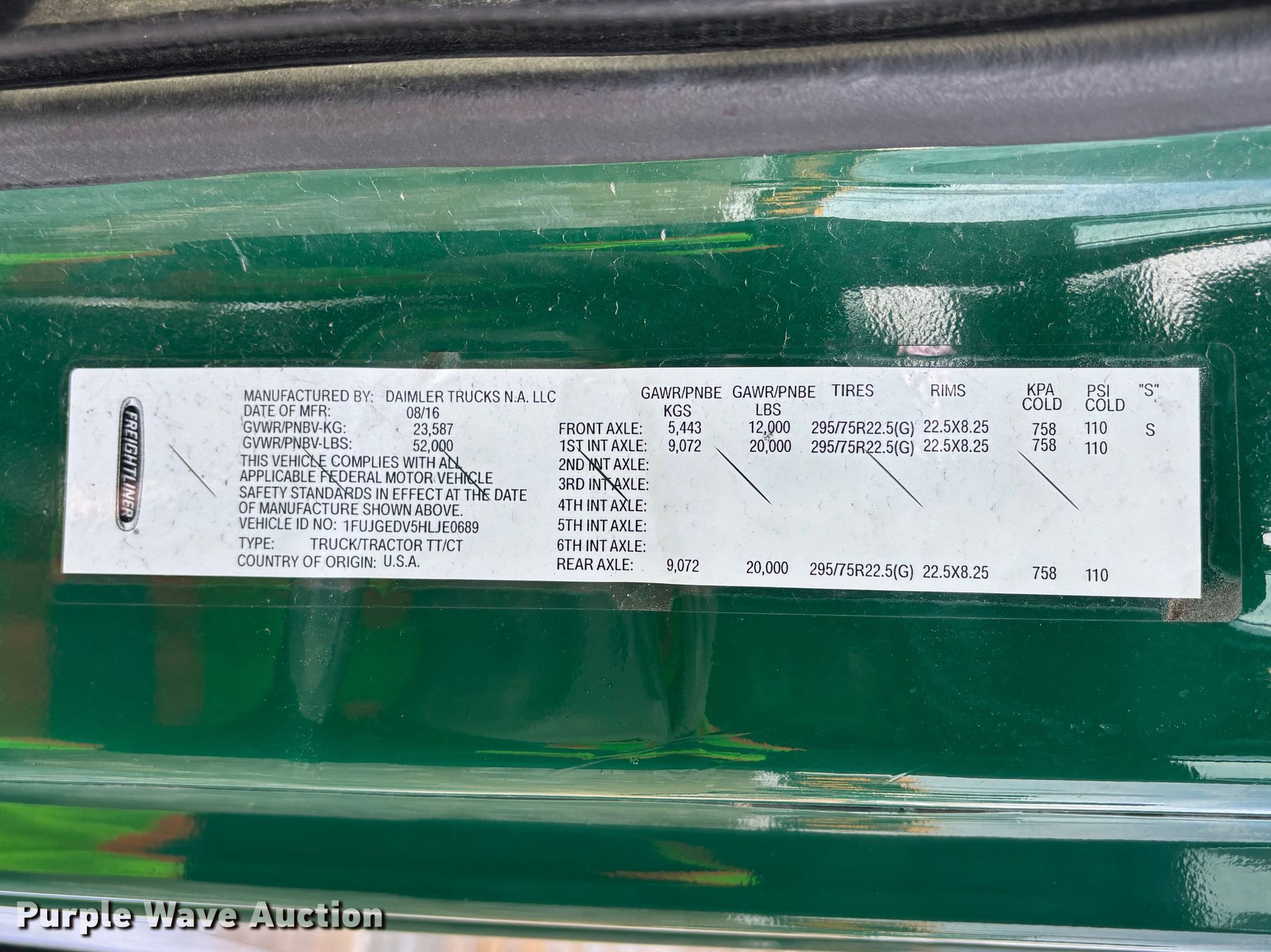 - VIN: 1FUJGEDV5HLJE0689