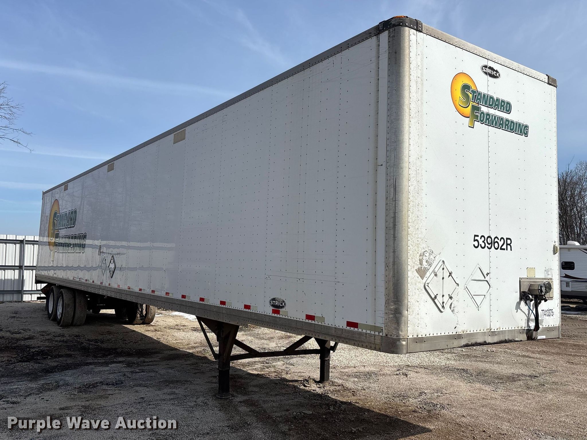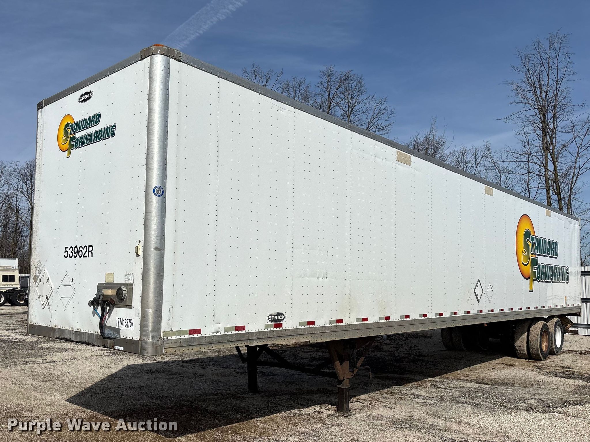 Purple Wave is selling a used Dry Van Trailer in Wisconsin. This item is a 2013 Strick dry van trailer with the following: VIN: 1S12E9533DE526224, Unit #: 53962R, Lot #: 77413375