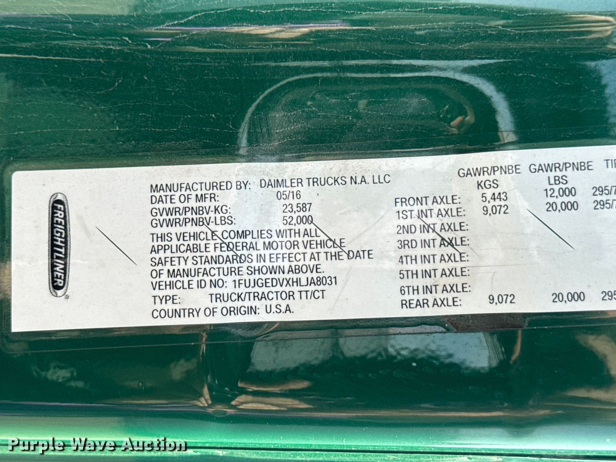 - VIN: 1FUJGEDVXHLJA8031