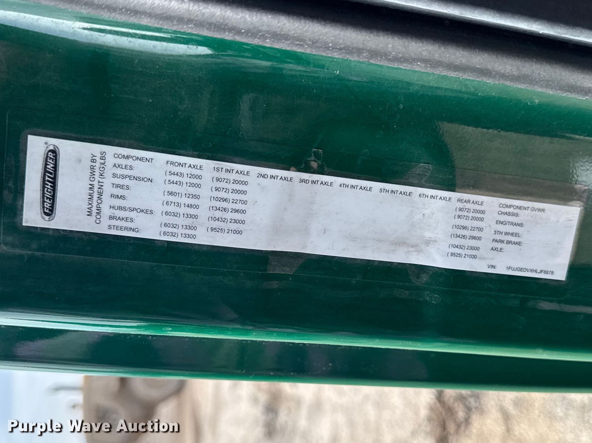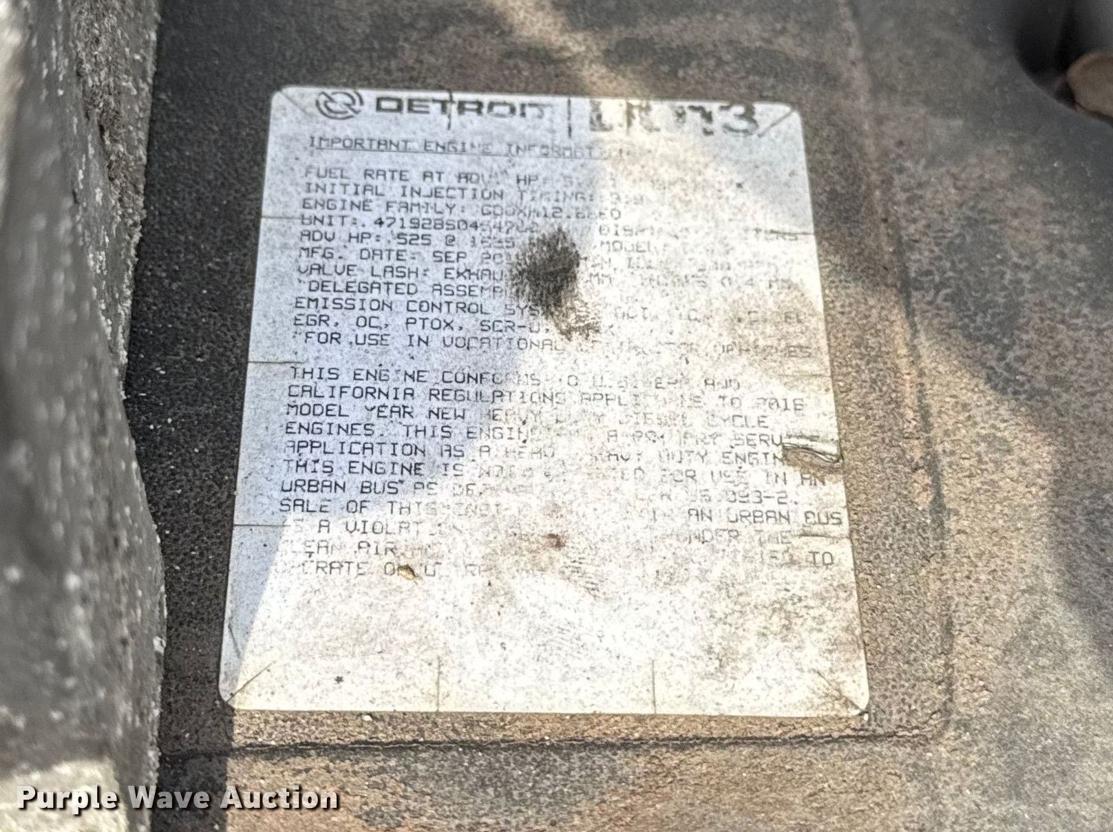 2017 Freightliner Cascadia 125 semi truck. Miles: 963,321 on odometer, VIN: 1FUJGEDVXHLJF8878, Unit #: 1087, Lot #: 76487175. Engine Detroit Diesel Detroit DD13, Displacement: 12.8L, Cylinders: 6, Fuel type: Diesel, Engine brake. Transmission No transmission. Chassis Axles: Tandem, Gear ratio: 2.41, Differential lock: Inter-axle, Suspension: Air Dump valves, Brakes: Air, Truck chassis: 156", GVWR: 52,000 lbs FAWR: 12,000 lbs, IAWR: 20,000 lbs, RAWR: 20,000 lbs, Wheelbase: 174". Interior AC, Heat, Heated mirrors, Power windows, Power locks, Cruise control, Air ride cab. Features Deck plate: Aluminum, Fifth wheel type: Fixed, Fuel tank: Dual. Tires Size: 295/75R22.5. Notes Key not included, Transmission missing , Unit must be towed or hauled , Non-operational unit. Fleet inventory reduction, stored at a secured facility. Please review REQUIRED REMOVAL INSTRUCTIONS. Titles will be distributed after confirmation of payment and removal. Indiana title. Title distribution may be delayed up to 30 days from verification of funds. Standard Forwarding, LLC Strategic Fleet Realignment Sale. Milwaukee, WI 53224
