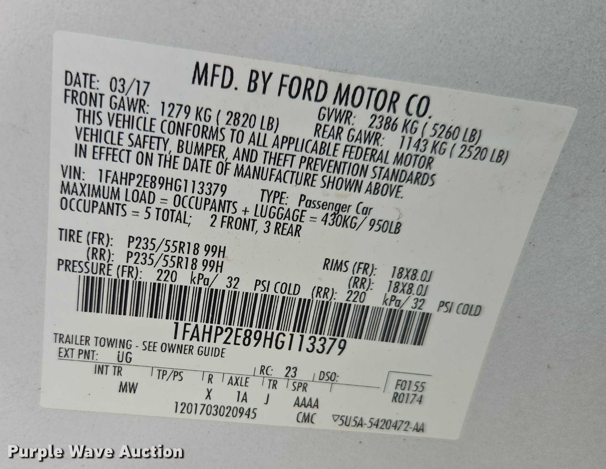 - VIN: 1FAHP2E89HG113379