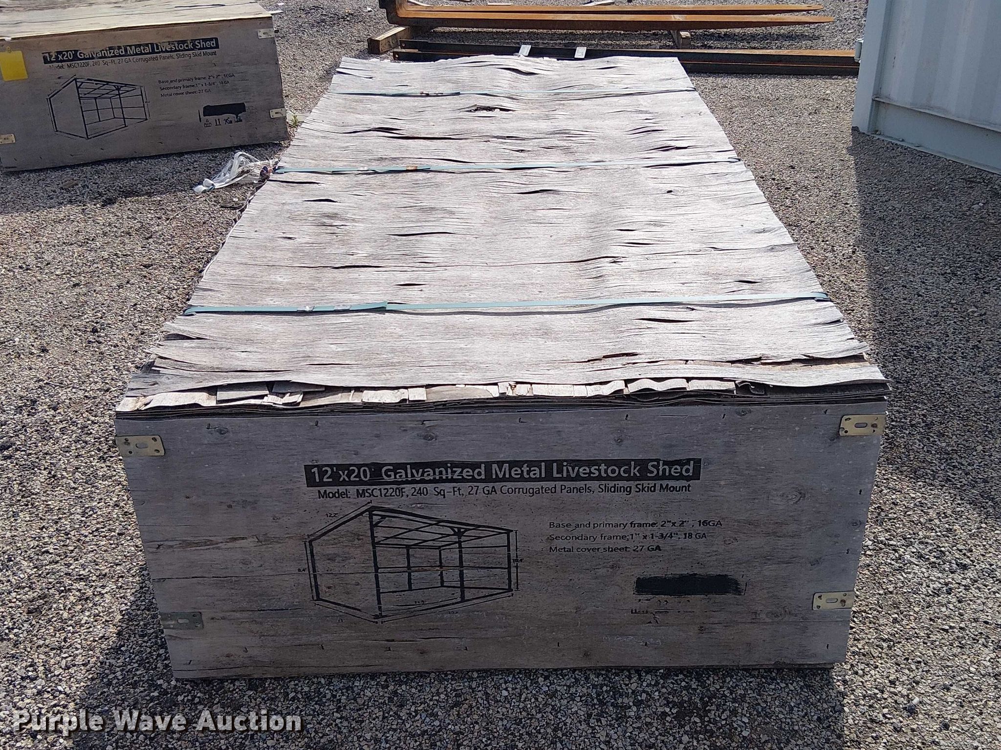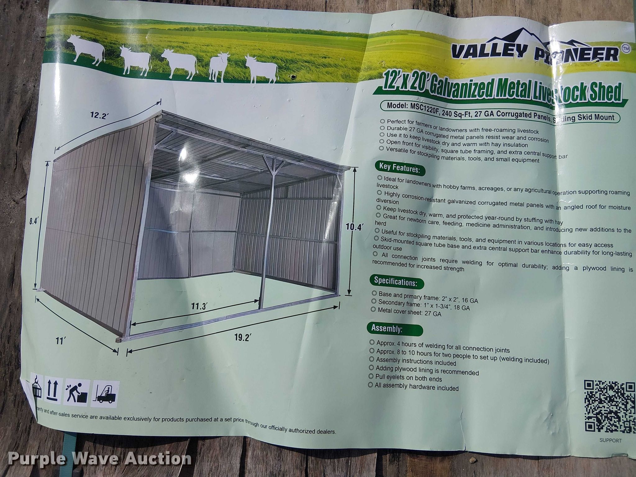 Purple Wave is selling a used Livestock Equip. in Texas. This item is a Valley Pioneer MSC1220F livestock shed with the following: 12' x 20', Galvanized metal