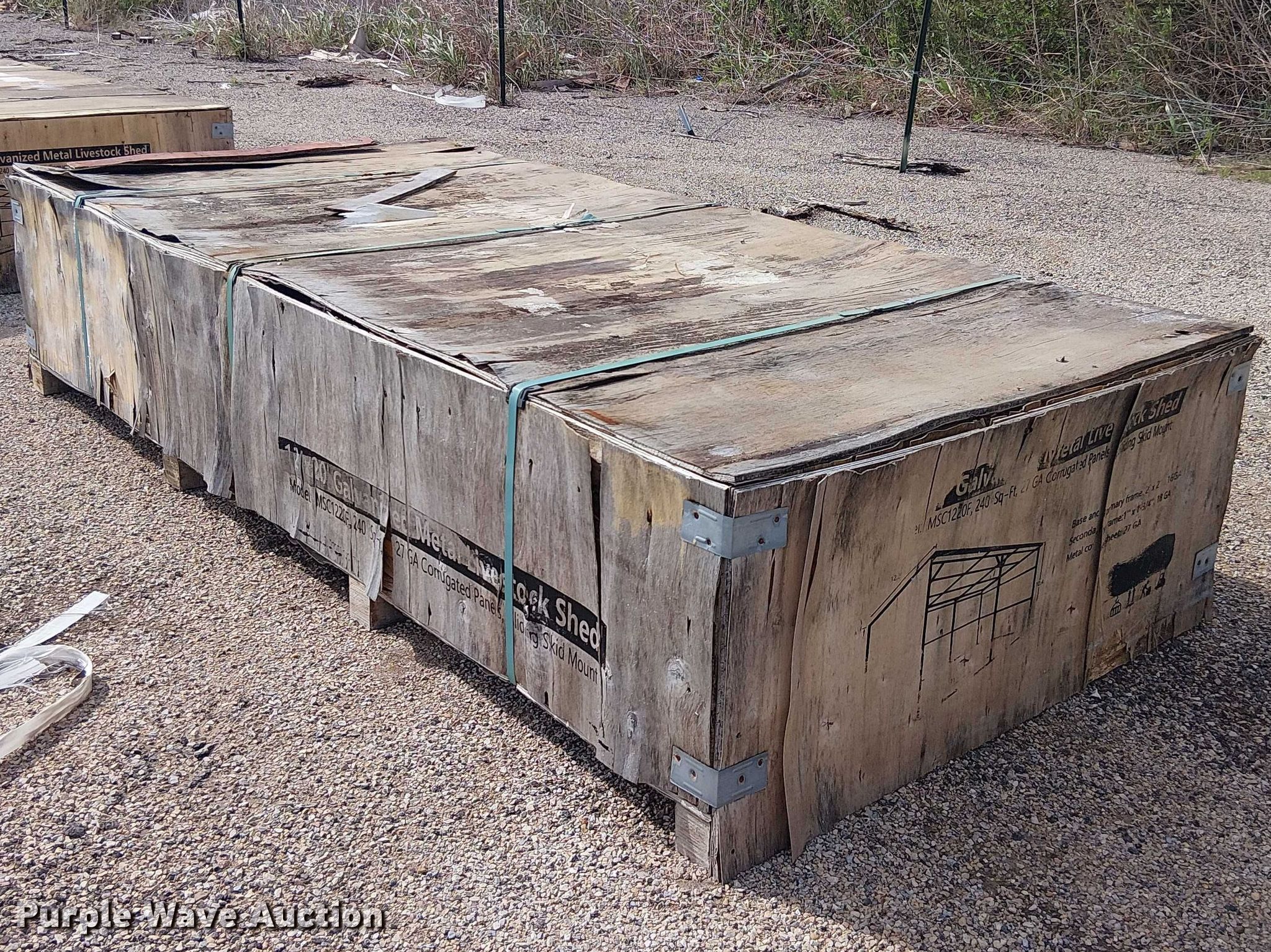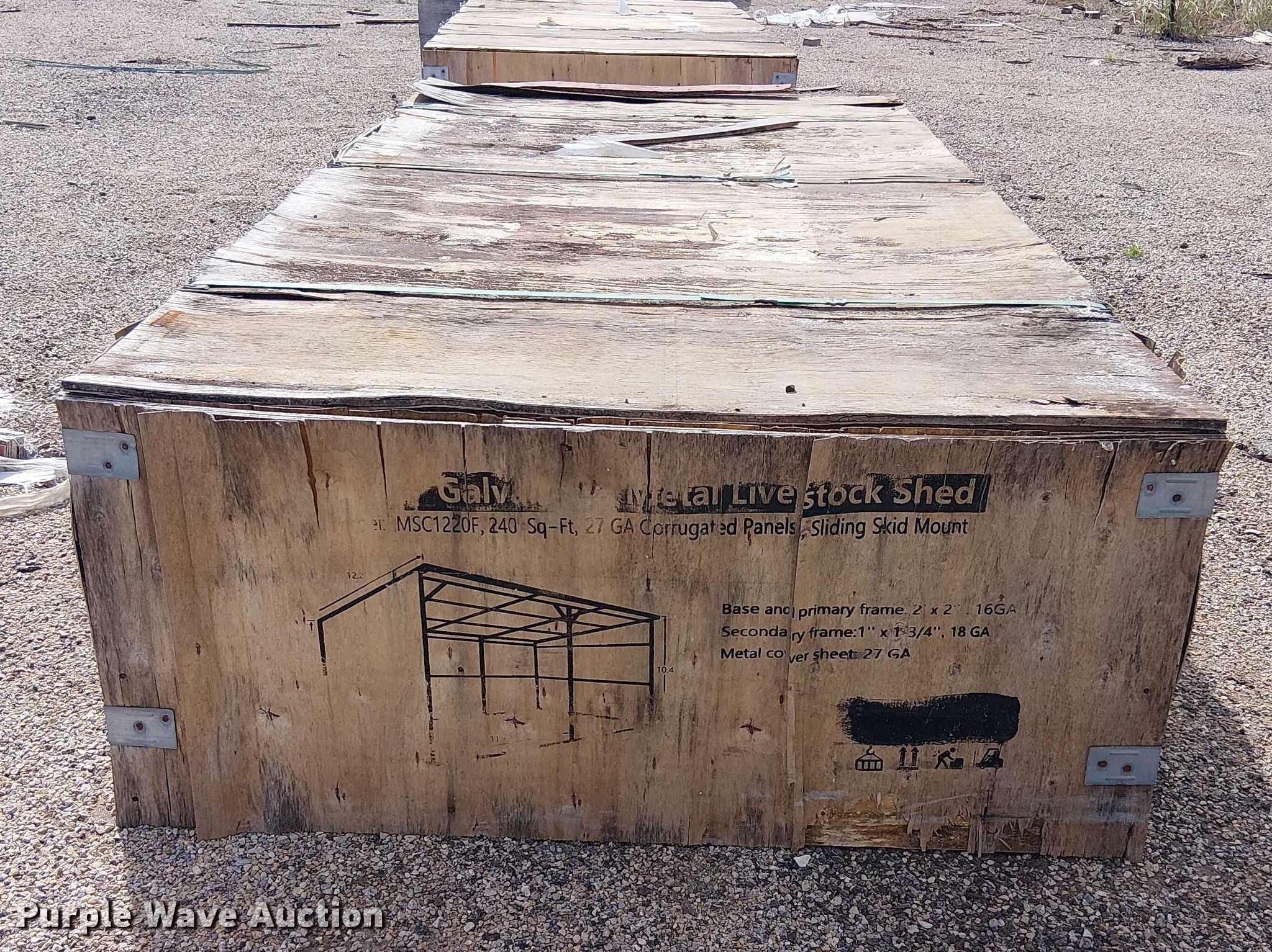Purple Wave is selling a used Livestock Equip. in Texas. This item is a Valley Pioneer MSC1220F livestock shed with the following: 12' x 20', Galvanized metal