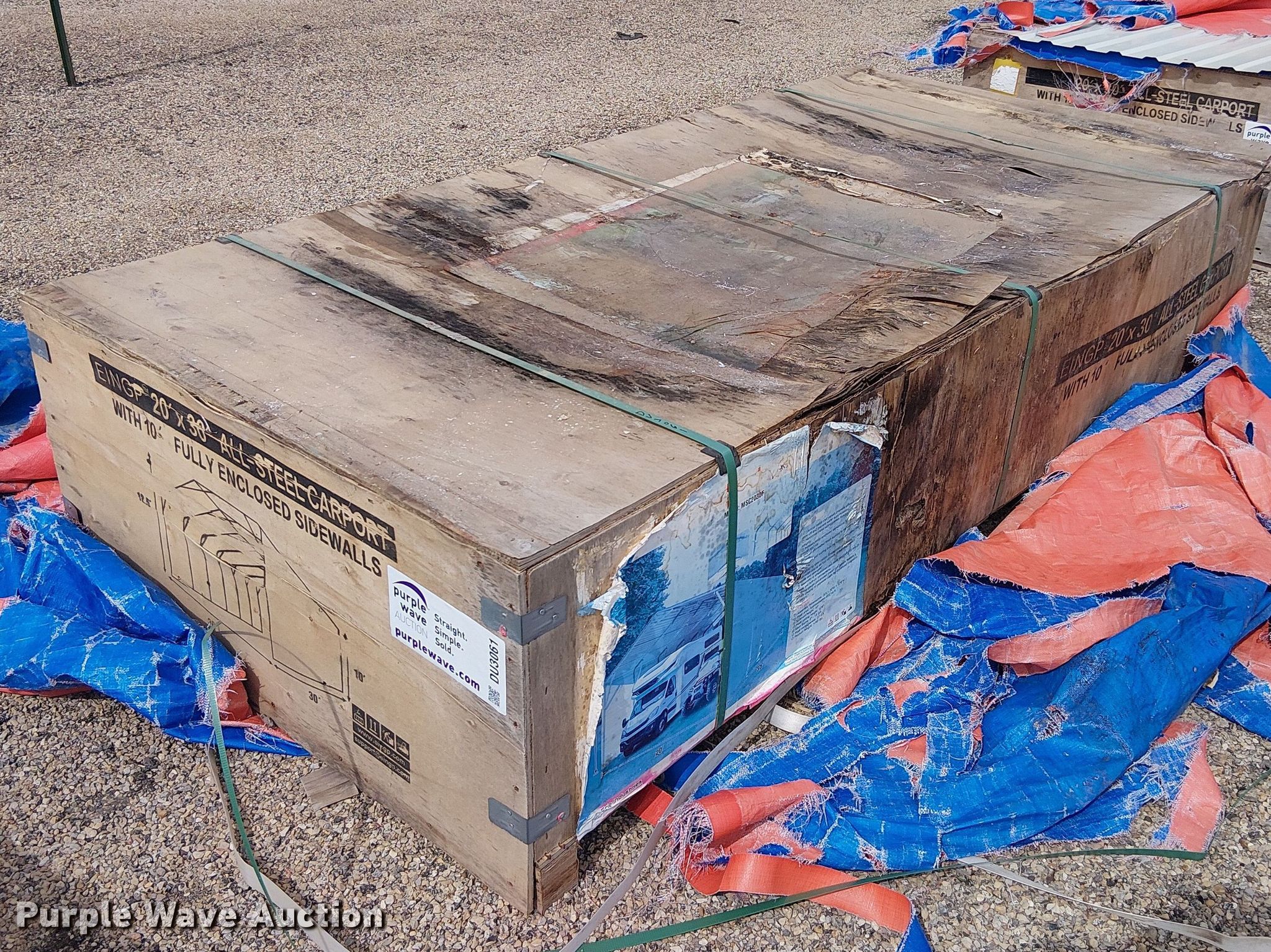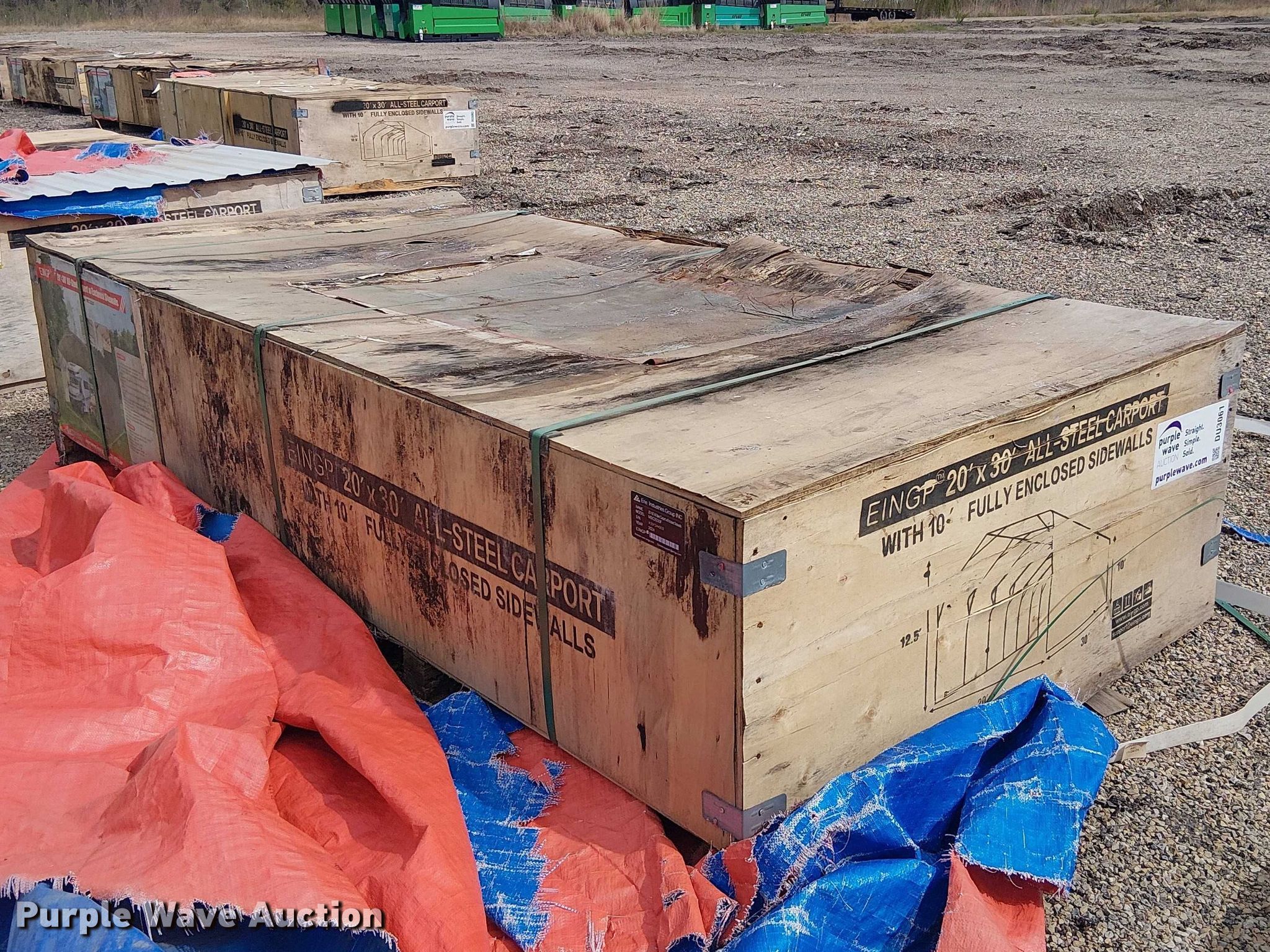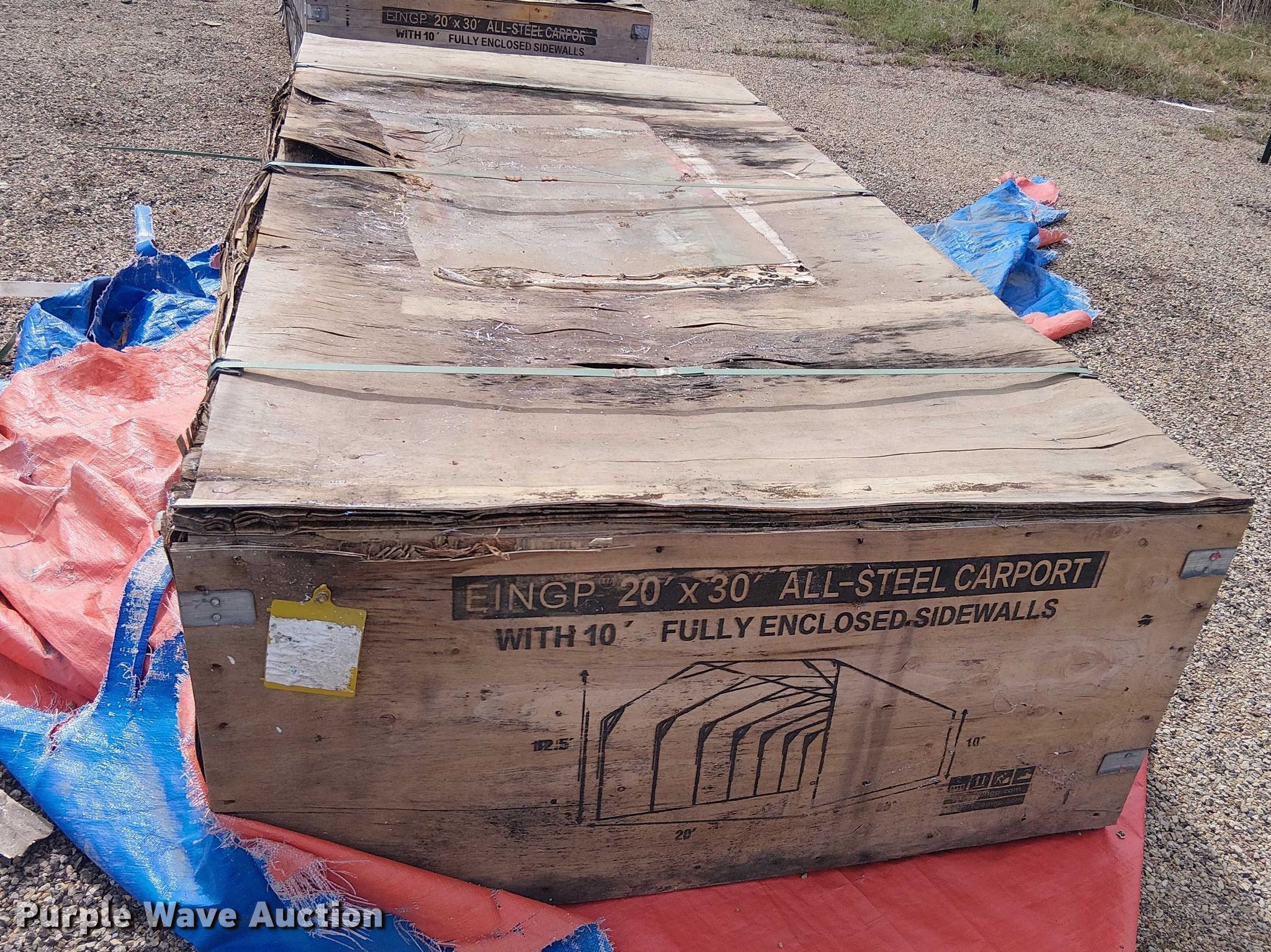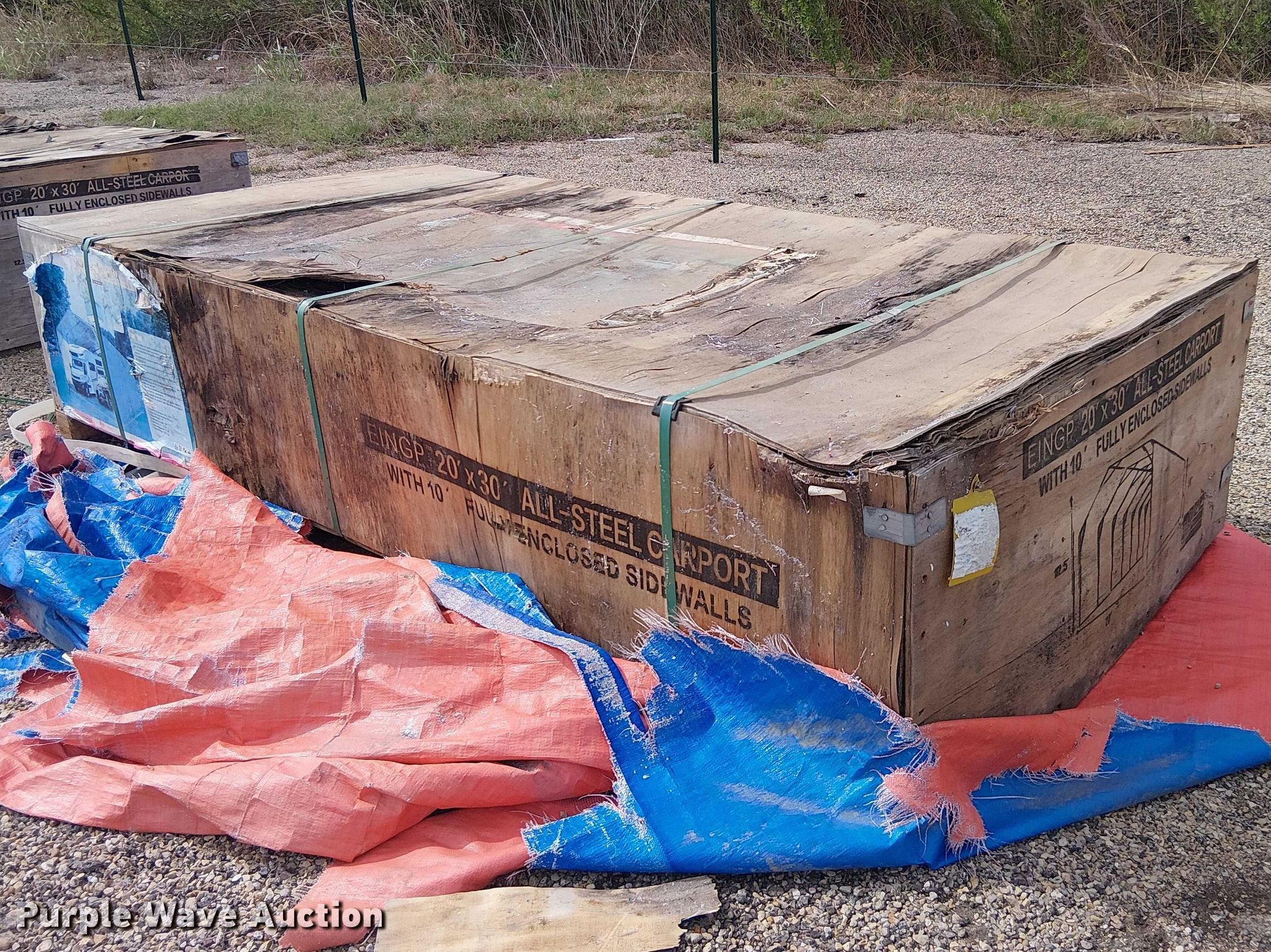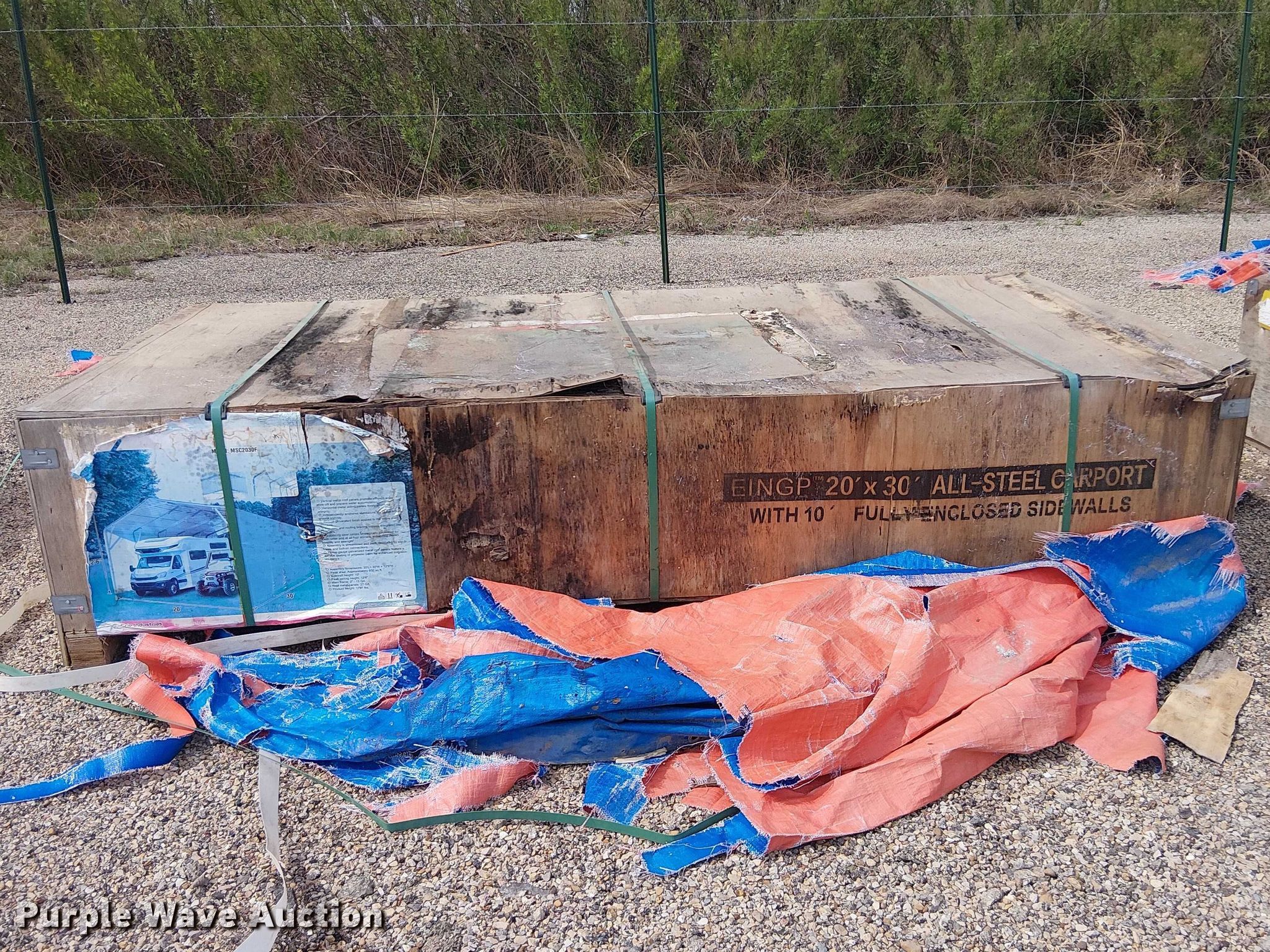 Purple Wave is selling a used Building Materials in Texas. This item is a Valley Pioneer MSC2030F steel carport with the following: 20' x 30'