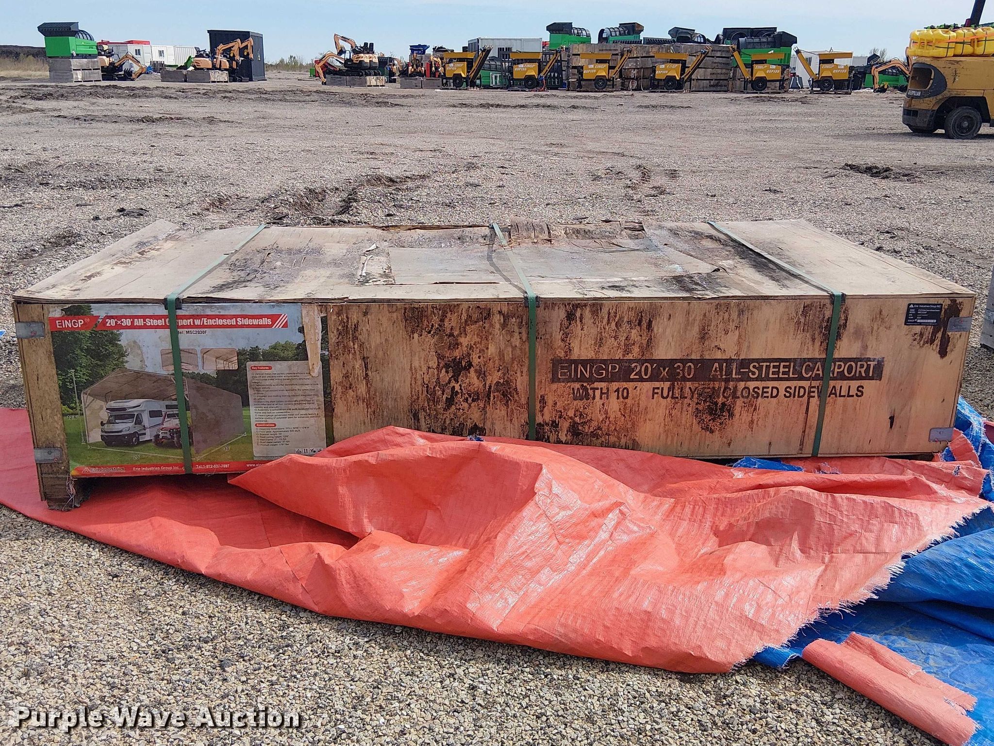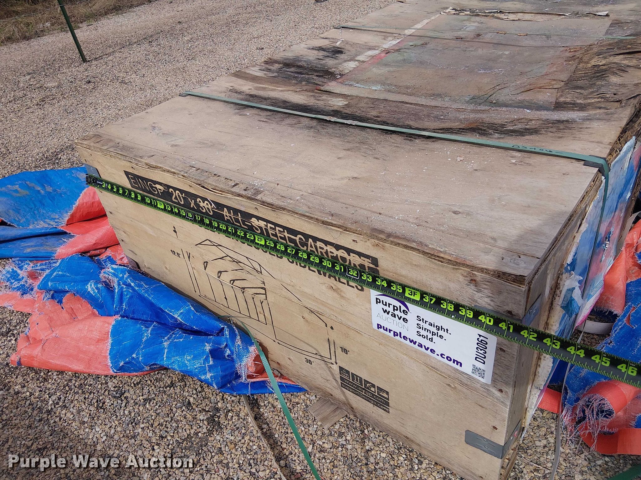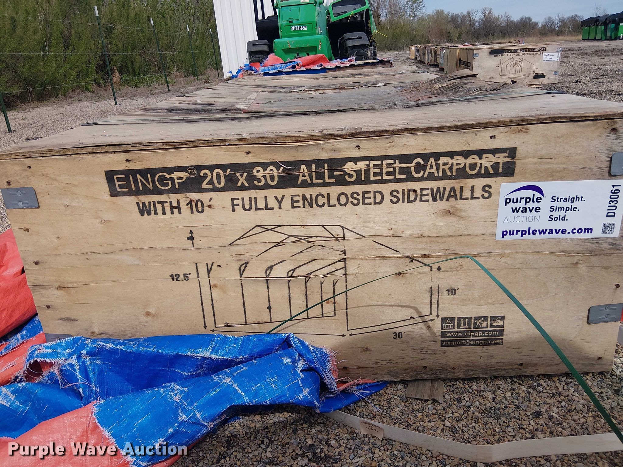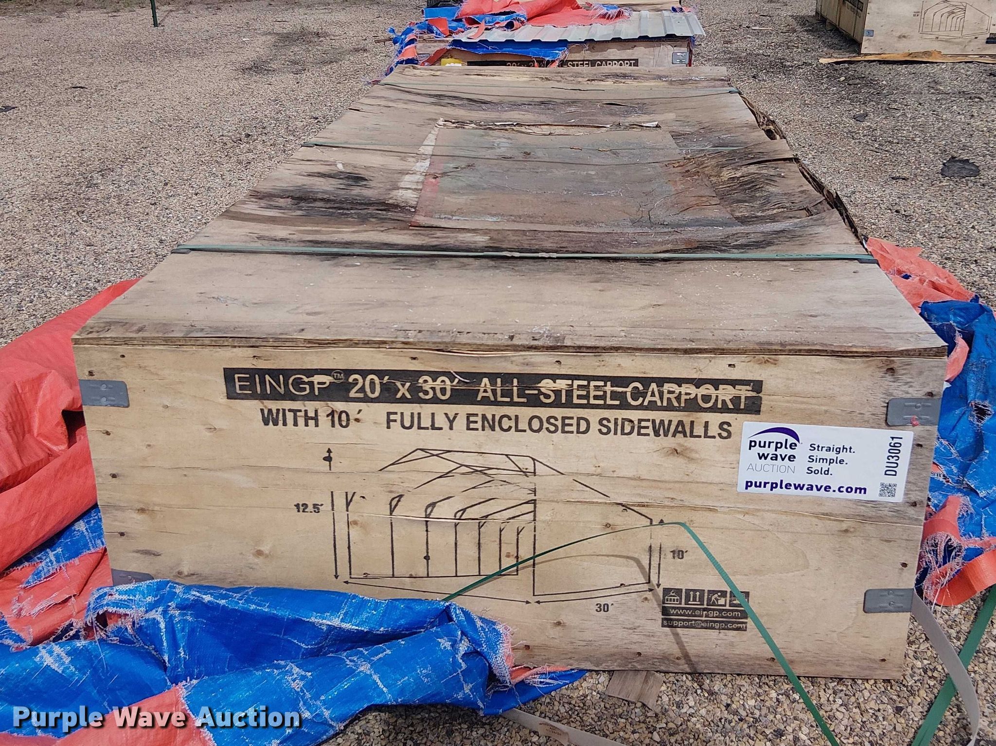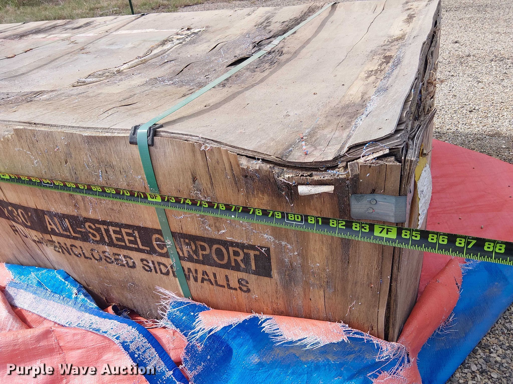 Purple Wave is selling a used Building Materials in Texas. This item is a Valley Pioneer MSC2030F steel carport with the following: 20' x 30'