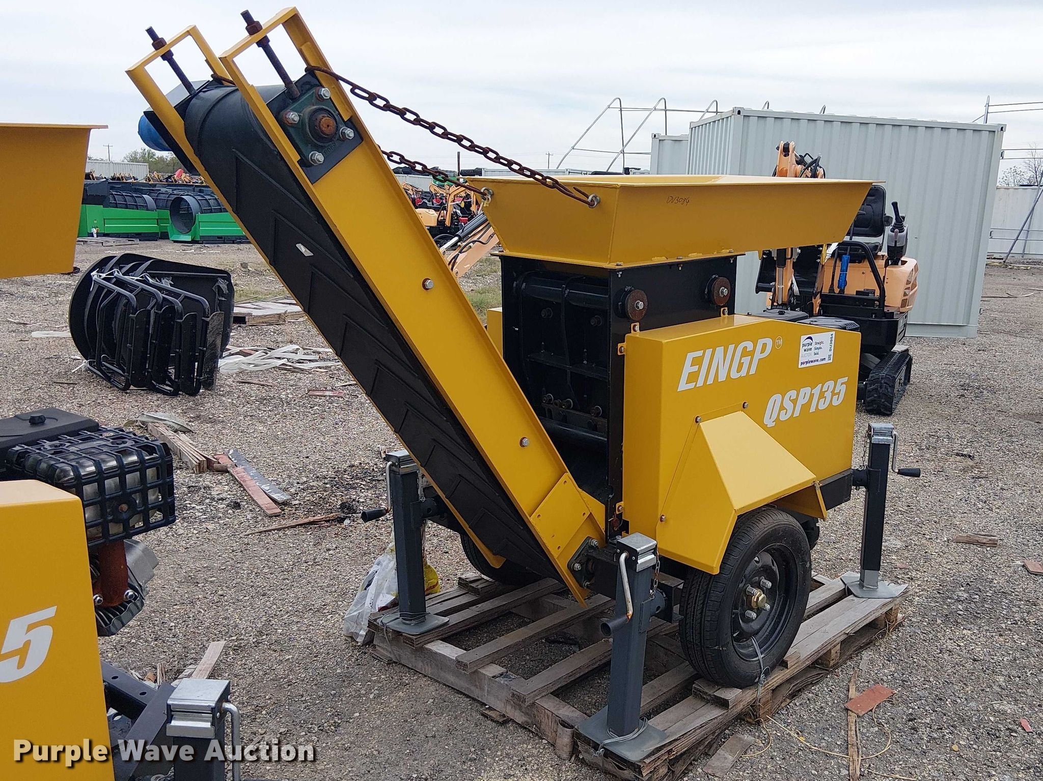 EINGP QSP135 jaw crusher. Hours: Unknown. Engine Displacement: 500 cc, Cylinders: 1, Fuel type: Gas. Features Crusher Jaw, Width: 15", Length: 20", Input hopper Length: 4', Width: 24", Discharge conveyor 5' L x 13" W. Tires Size: 145/70R12. Notes Unknown operating condition. AllTerrain Construction Solutions Corp. Hutchins, TX 75141