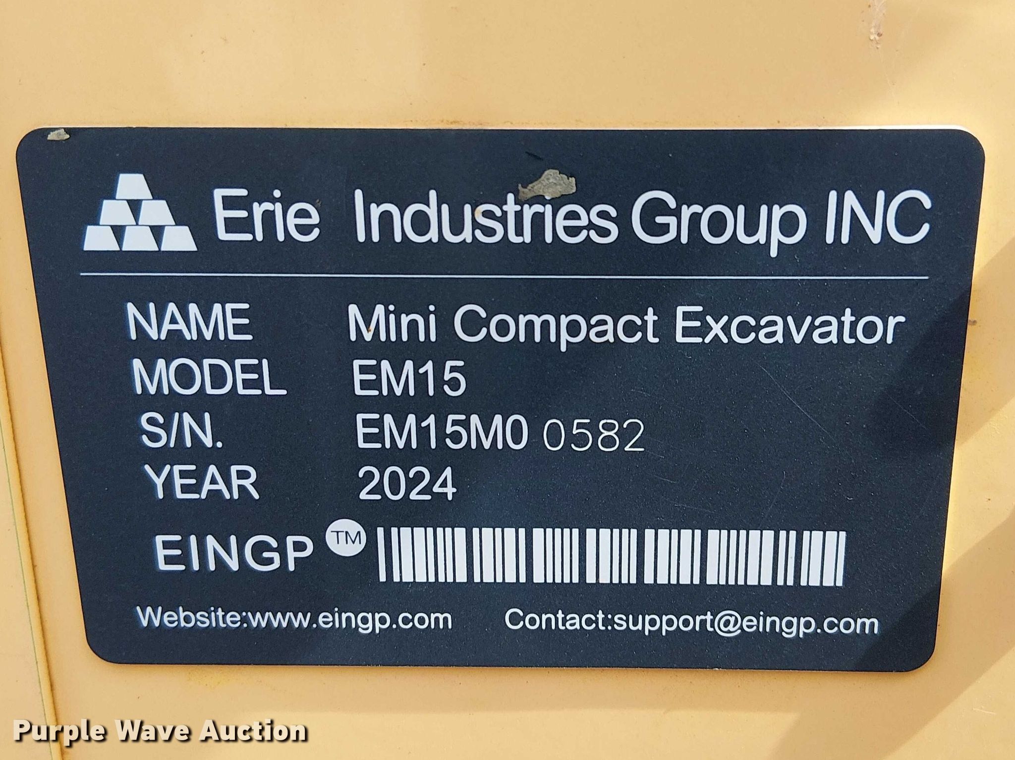Purple Wave is selling a used Mini Excavator in Texas. This item is a 2024 EINGP EM15 mini excavator with the following: Hours: Unknown, Serial: EM15M00582