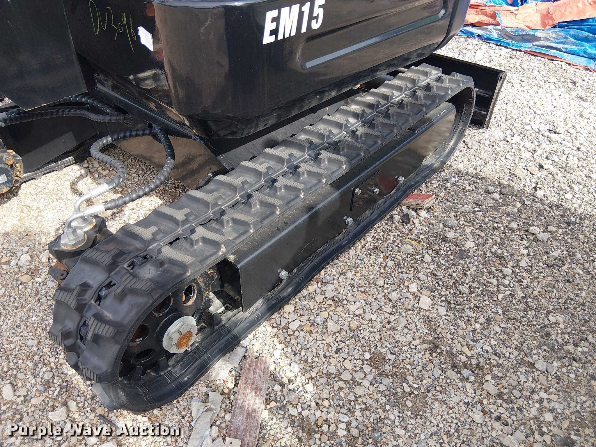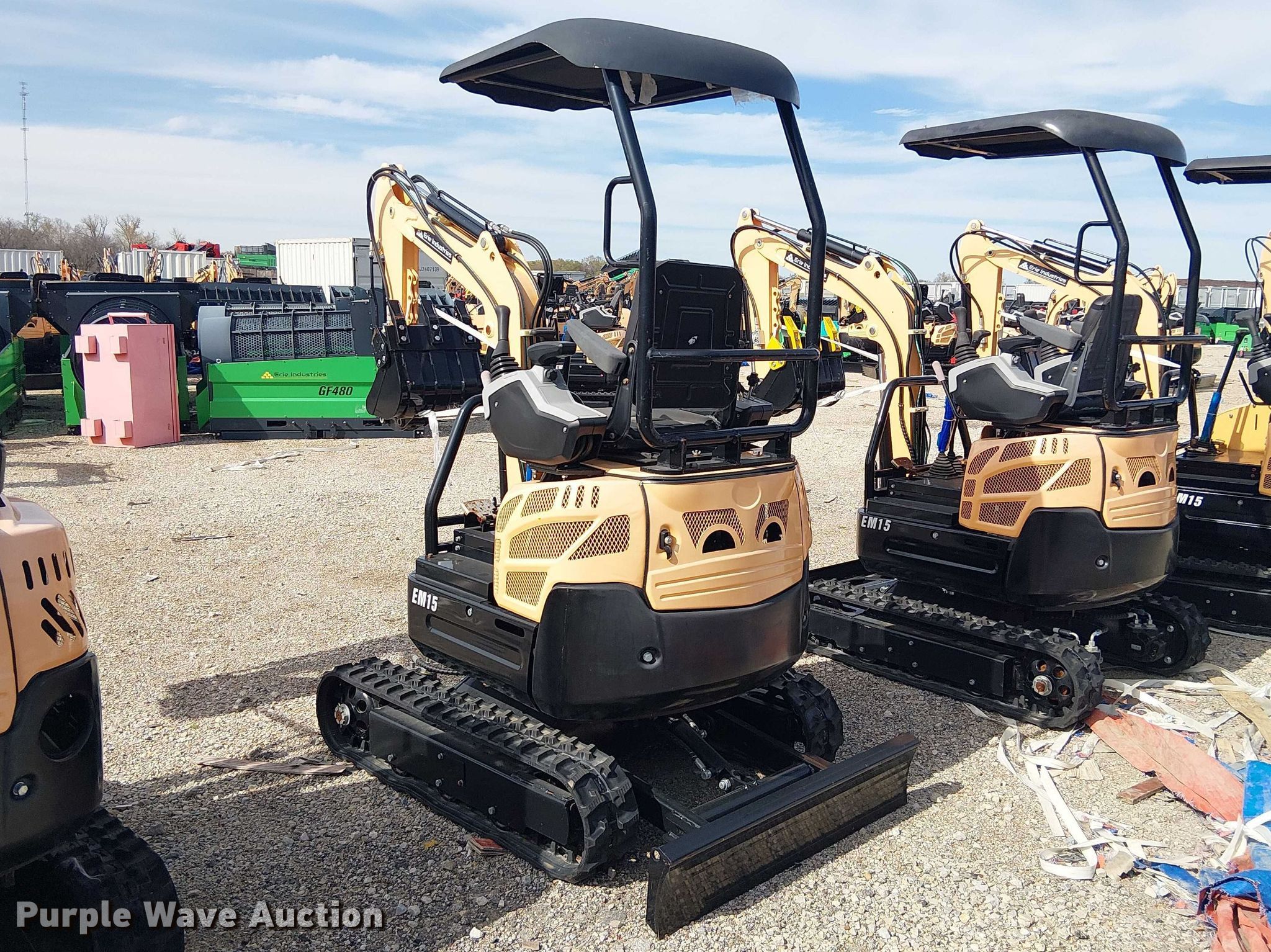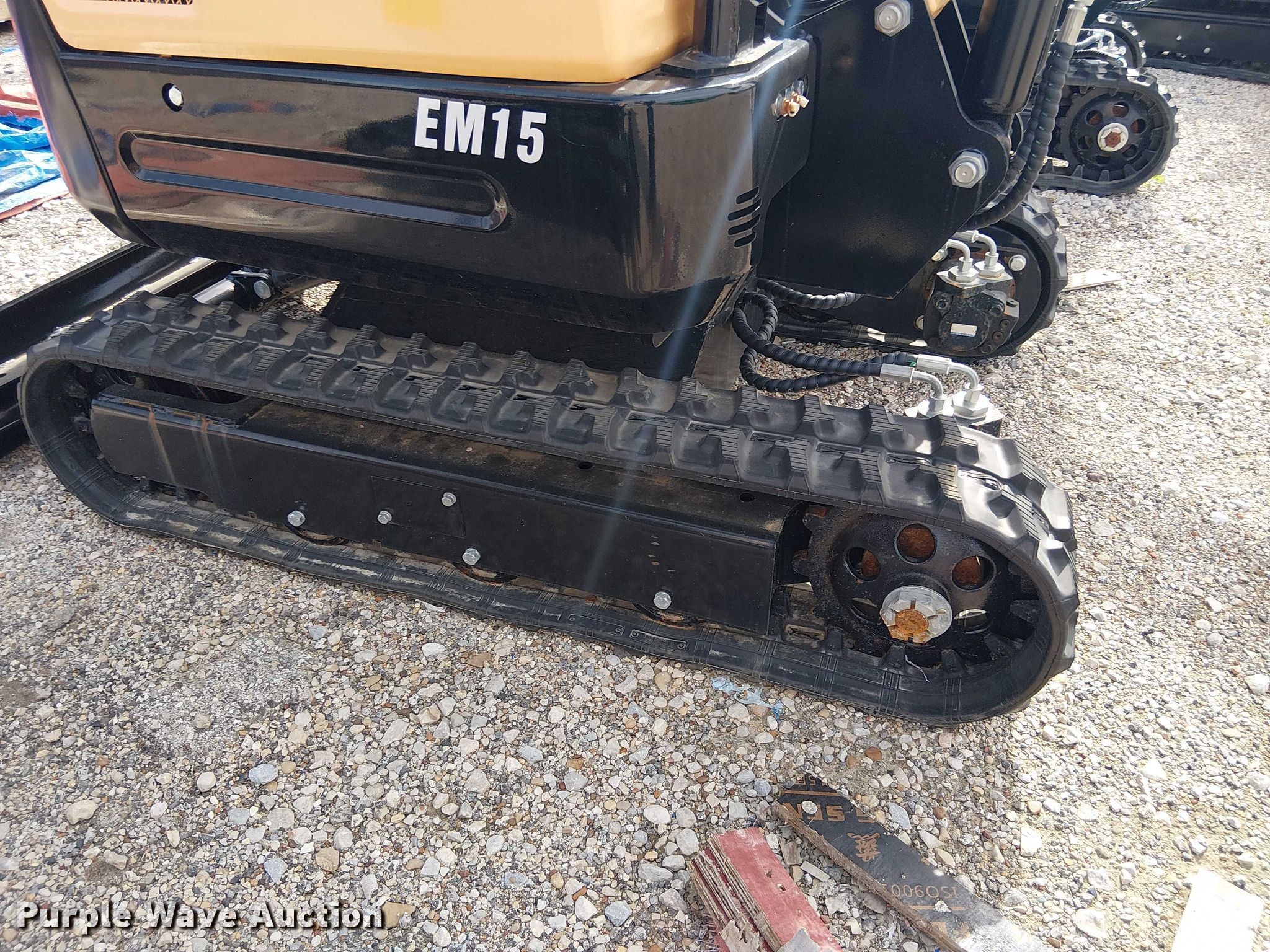 2024 EINGP EM15 mini excavator. Hours: Unknown, Serial: EM15M00532. Engine Displacement: 420 cc, Cylinders: 1, Fuel type: Gas. Transmission Hydrostatic. Features Auxiliary hydraulics, Backfill blade Width: 43", Boom Standard, Stick Stick length: 32", Bucket Width: 15", Teeth: 5. Tracks Width: 7", Rubber. Notes Unknown operating condition. AllTerrain Construction Solutions Corp. Hutchins, TX 75141