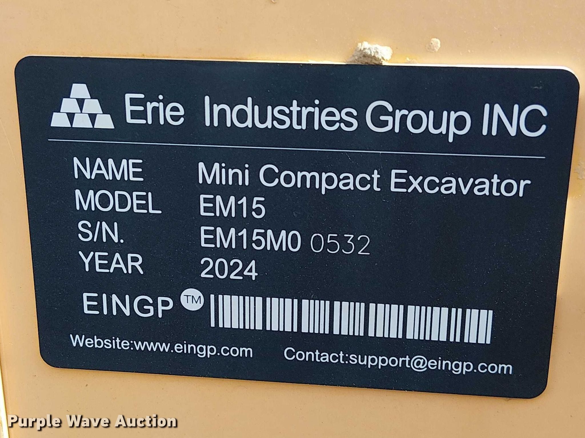 Purple Wave is selling a used Mini Excavator in Texas. This item is a 2024 EINGP EM15 mini excavator with the following: Hours: Unknown, Serial: EM15M00532