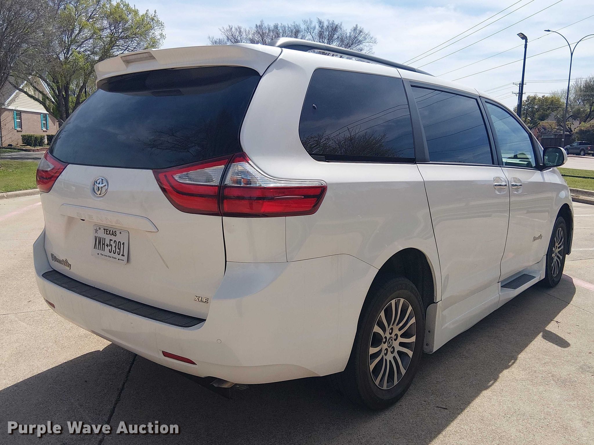 Purple Wave is selling a used Passenger Vehicle in Texas. This item is a 2019 Toyota Sienna XLE handicap accessible van with the following: Miles: 57,960 on odometer, Miles or hours may vary, unit still in use, VIN: 5TDYZ3DC7KS979028