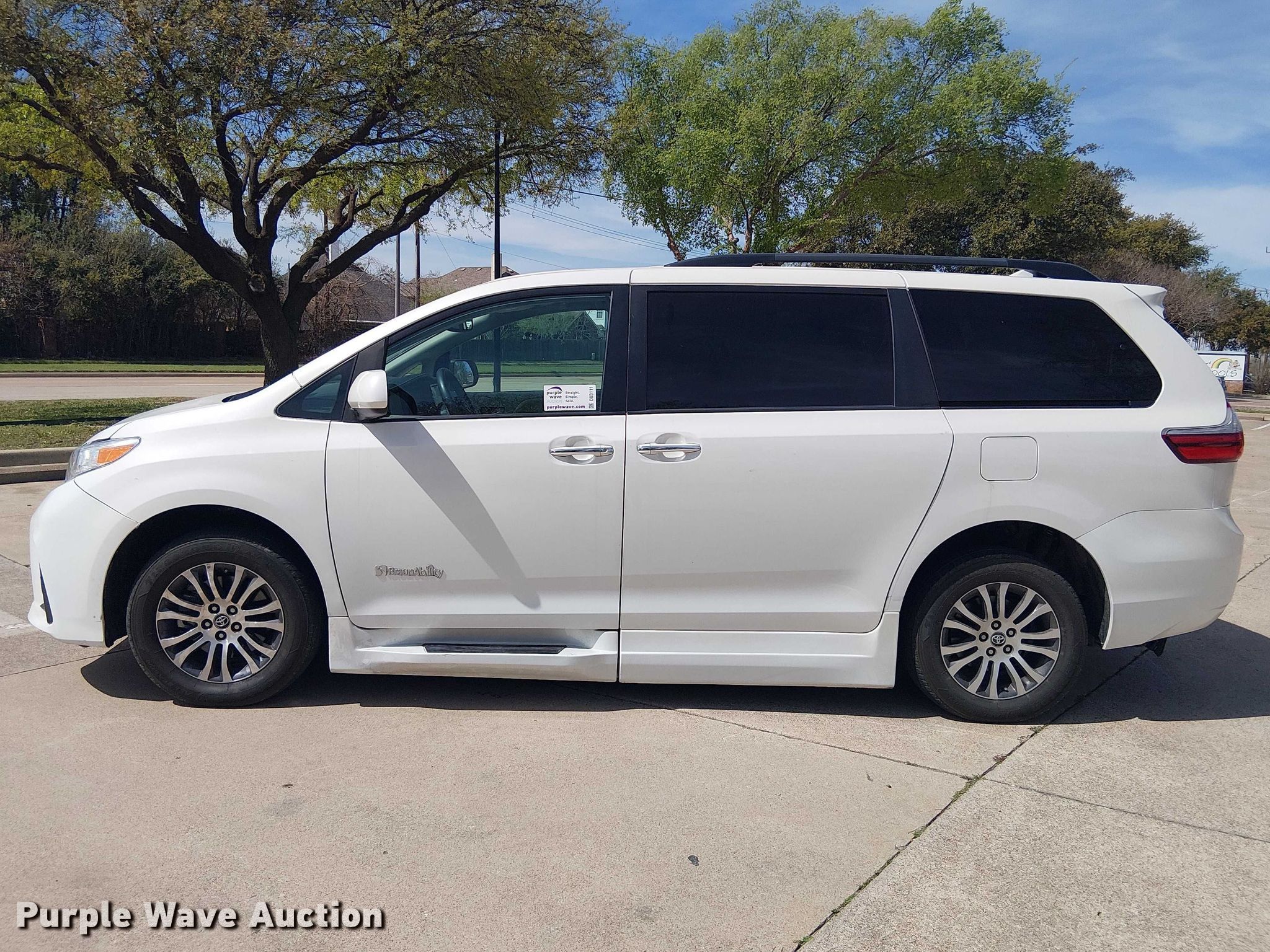 2019 Toyota Sienna XLE handicap accessible van for sale in Coppell, Texas. Item DU3111 will sell on April 22nd, 2026.
