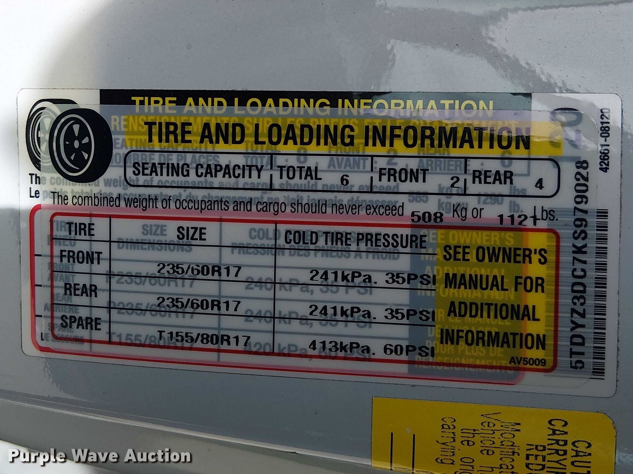 - VIN: 5TDYZ3DC7KS979028