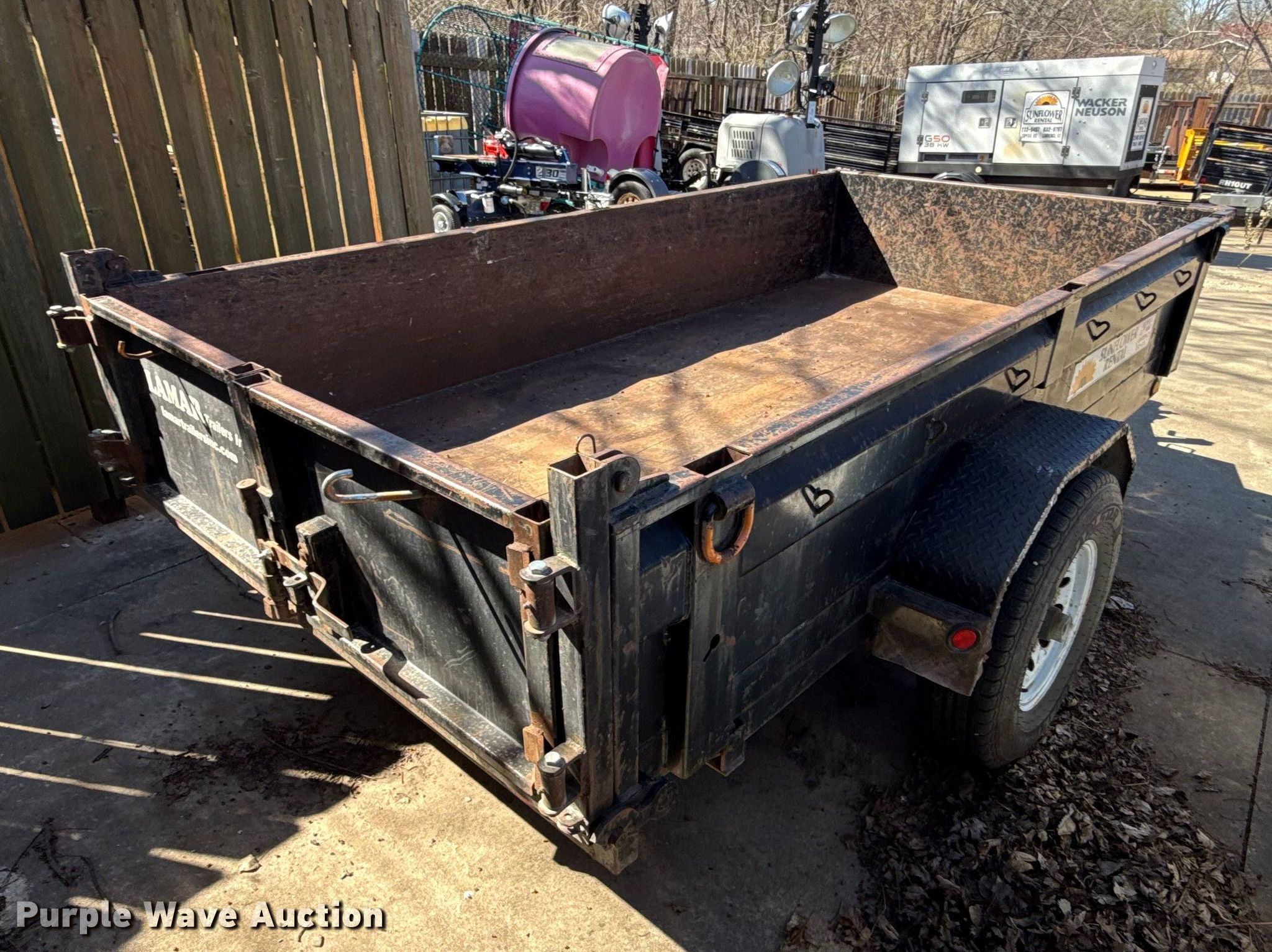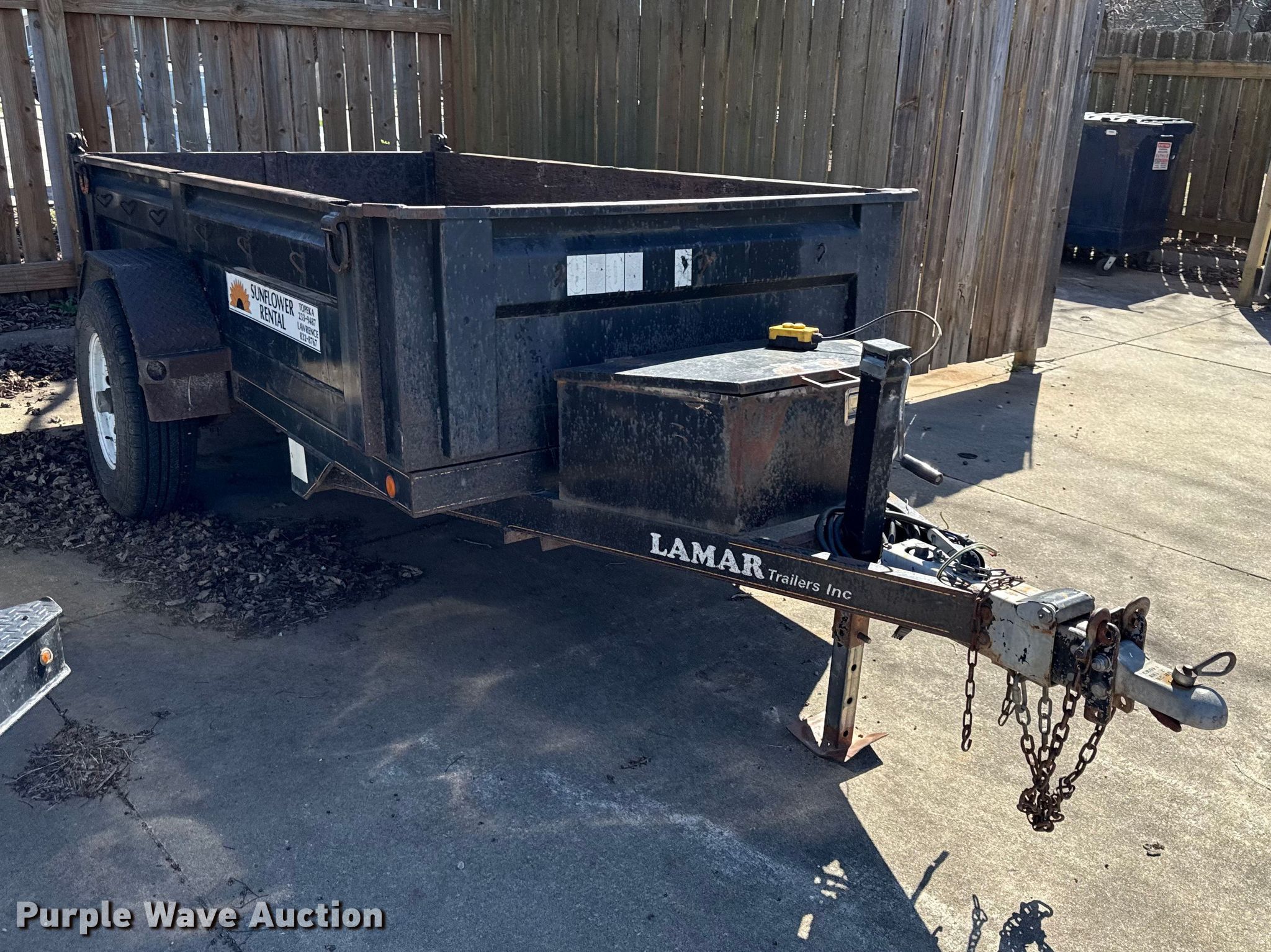 Purple Wave is selling a used Dump Trailer in Kansas. This item is a 2010 Lamar dump trailer with the following: Overall, Length: 14', Width: 80", Body, Length: 10', Side height: 18"