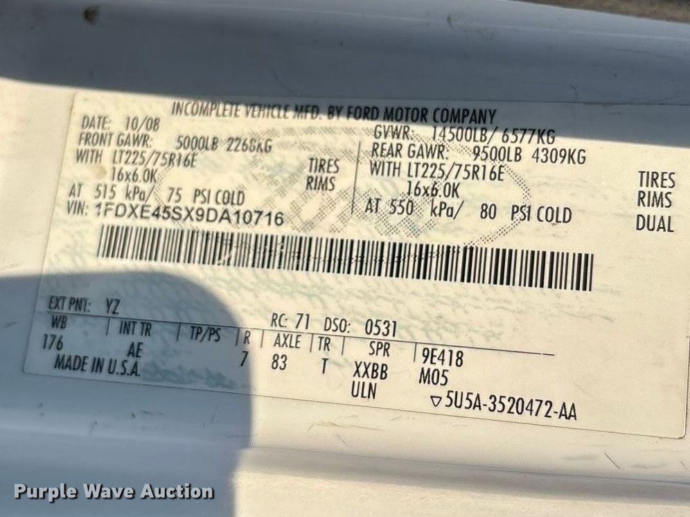 - VIN: 1FDXE45SX9DA10716