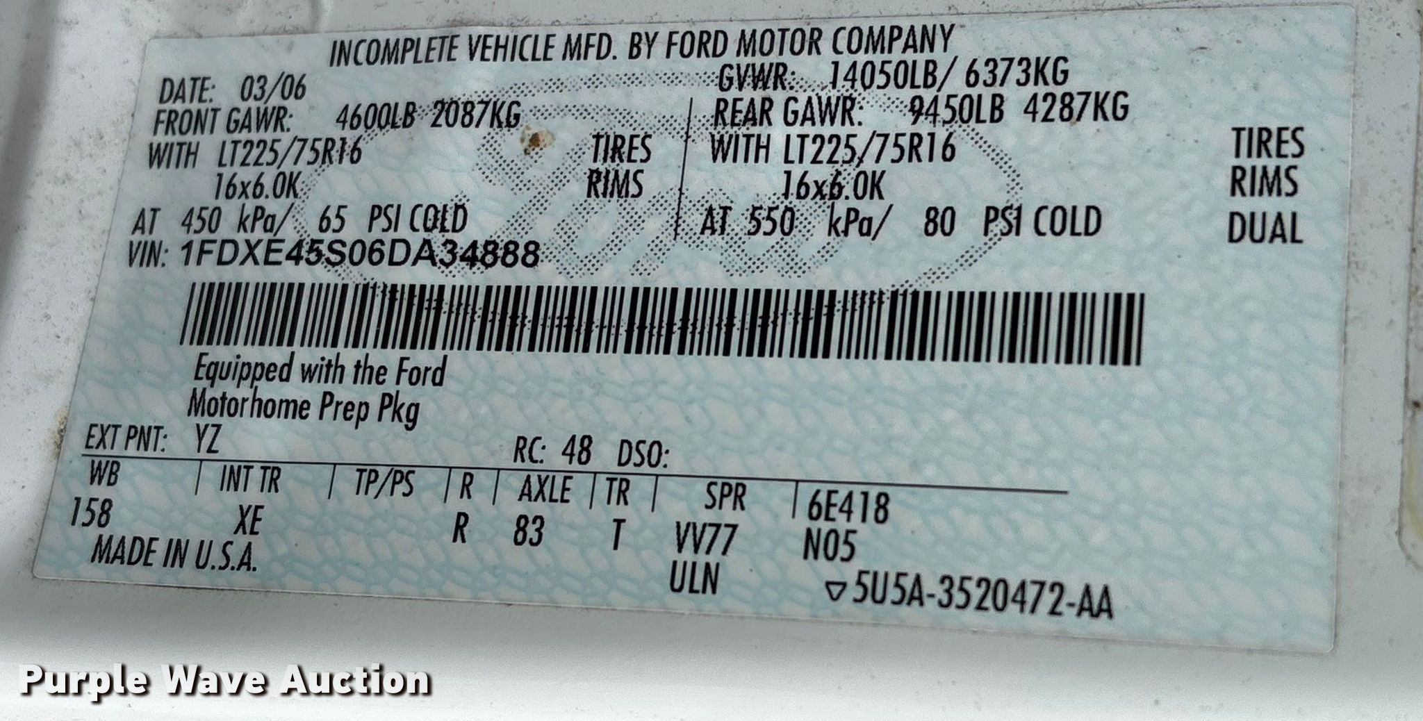 2007 Four Winds 31F RV. Miles: 27,993 on odometer, Camper length: 32', VIN: 1FDXE45S06DA34888. Engine Displacement: 6.8L, Cylinders: 10, Fuel type: Gas. Transmission Automatic. Chassis Axles: Single, Suspension: Spring, GVWR: 14,050 lbs. Interior Kitchen: Sink, Refrigerator, Freezer, Microwave, Oven, Stove: Gas, Living room: Table, Pull out couch, Bathroom, Beds: 2, TVs: 2, Sound system, Heater. Features Slide outs: 2, Awnings: 2, Onan 4KYFA26100K, Fuel type: Gas, Watts: 120. Tires Size: 225/75R16, Brand: Toyo. Notes Unknown operating condition of generator, Tires damaged, dry rotted, Water damage Interior water damage. New York title. Seller is a Texas licensed motor vehicle dealer. The buyer may be required to pay sales tax and/or registration fees to the dealer prior to taking possession. Buyers may be required to provide identification to the licensed dealer to comply with state laws. Title will be assigned and distributed by the dealer. Please contact the seller for distribution questions. Habash Enterprises LLC. Texas City, TX 77590