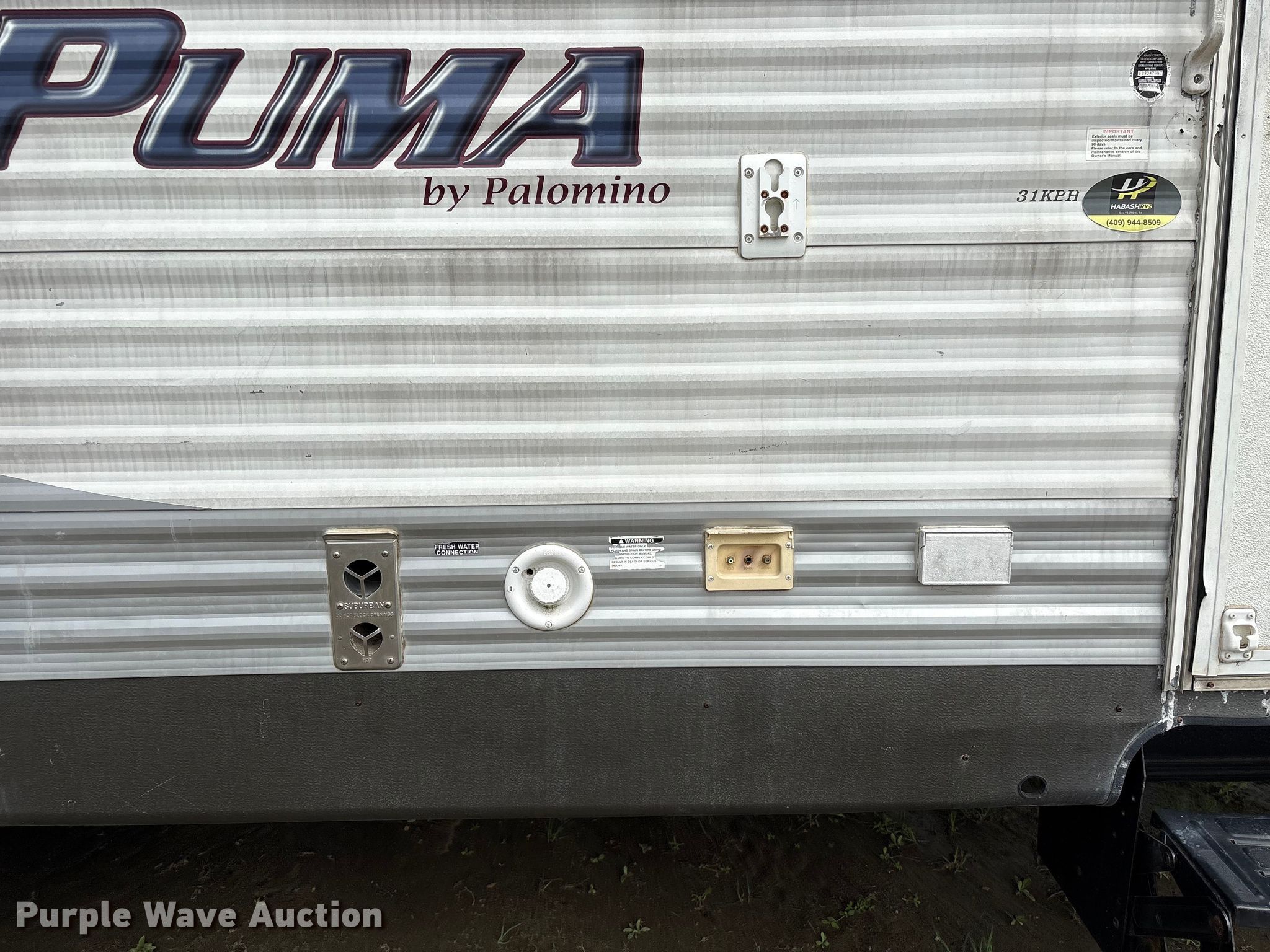 2012 Puma Towables Palamino Camper. Camper length: 32', VIN: 4X4TPUG29CP038887. Chassis Axles: Tandem, Suspension: Spring. Interior Kitchen: Sink, Refrigerator, Freezer, Oven, Stove: Gas, Living room: Couch, Bathroom, Beds: 3 Bed type: Queen, AC units: 1. Features Slide outs: 2, Ball hitch: 2". Tires Size: 225/75R15, Brand: Contender. Texas title. Seller is a licensed motor vehicle dealer. The buyer may be required to pay sales tax and/or registration fees to the dealer prior to taking possession. Buyers may be required to provide identification to the licensed dealer to comply with state laws. Title will be assigned and distributed by the dealer. Please contact the seller for distribution questions. Habash Auto & RV Sales. Texas City, TX 77590