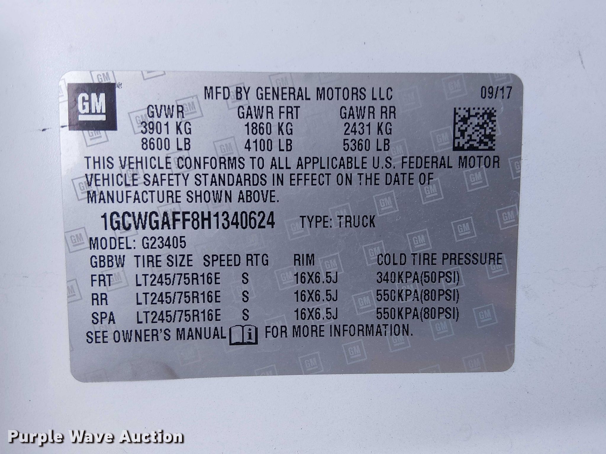 2017 Chevrolet Express 2500 van | Wednesday April 22 Vehicles and Equipment Auction