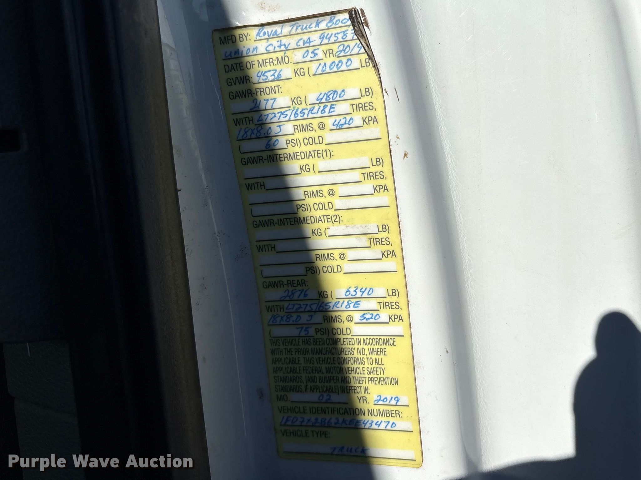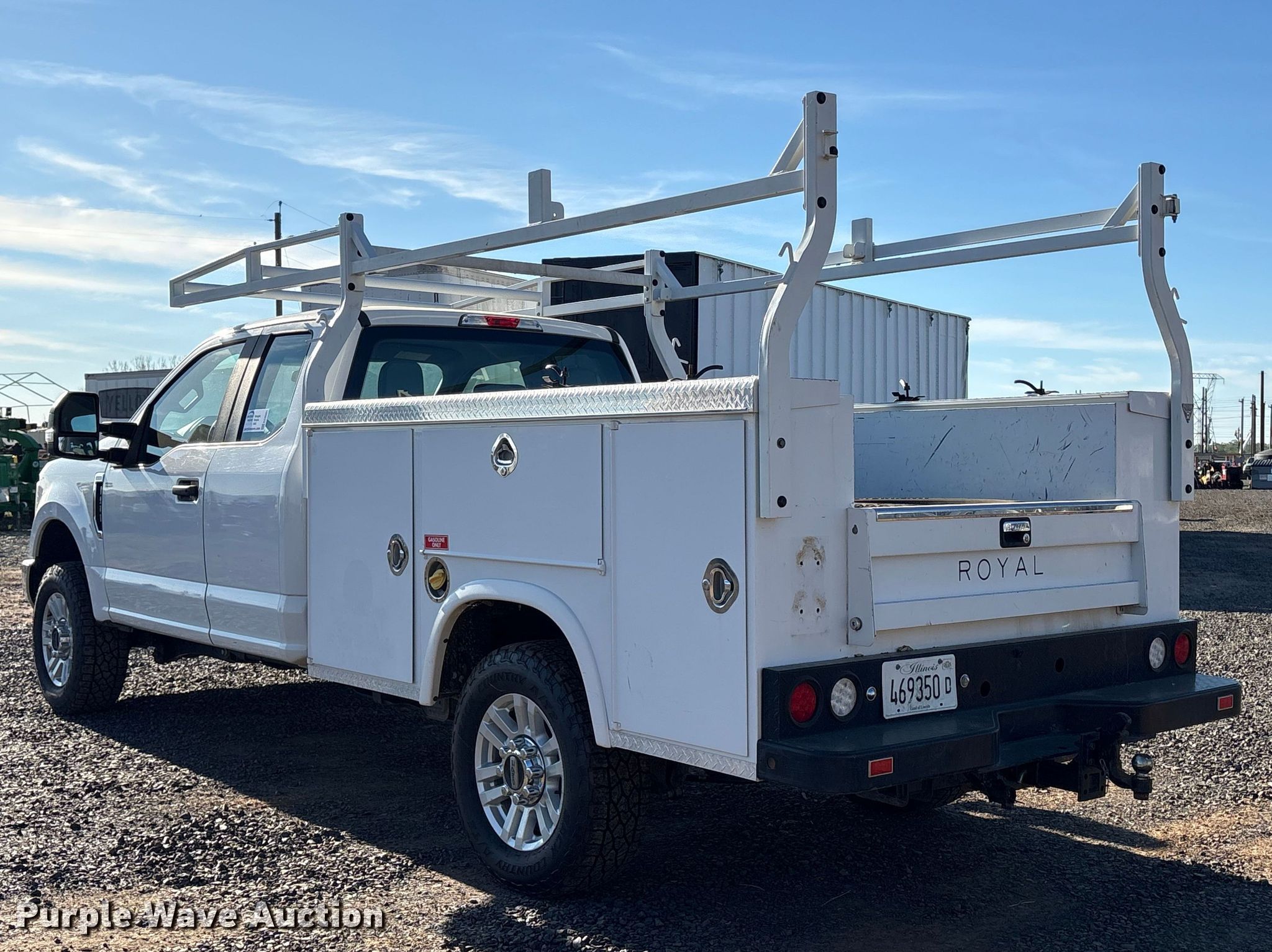 2019 Ford F250 Super Duty Ext. Cab utility bed pickup truck. Miles: 35,374 on odometer, VIN: 1FD7X2B62KEE43470. Engine Displacement: 6.2L, Cylinders: 8, Fuel type: Gas. Transmission Automatic, Four wheel drive. Interior AC, Heat, Heated mirrors, Power windows, Power locks, Cruise control, Backup camera, Auxiliary controls, Brake controller. Features Bed Utility bed, ROYAL TRUCK BODY 317111, Serial: A000066320, Length: 8' 2", Width: 6' 6", Height: 2'. Tires Size: 275/65R18. Notes Pintle hitch included, Additional tire and wheel included, Jump start required during on-site data collection. Buyer responsible for all aspects of state emissions compliance. Illinois title. Title distribution may be delayed up to 30 days from verification of funds. Greentek Fleet Liquidation. Oroville, CA 95965
