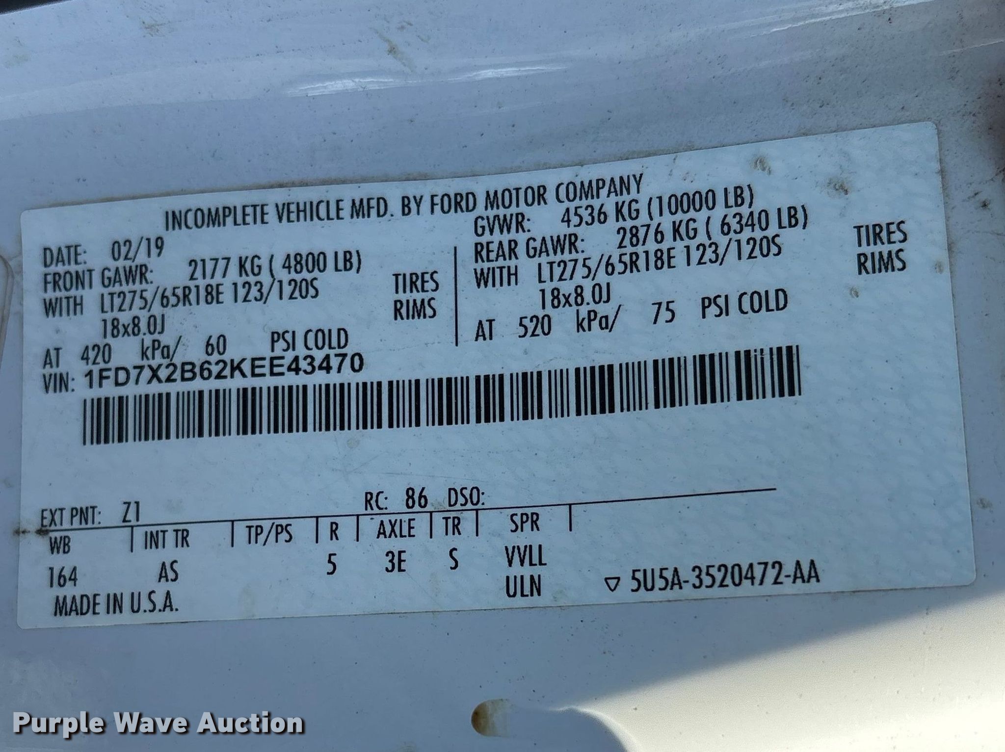 - VIN: 1FD7X2B62KEE43470
