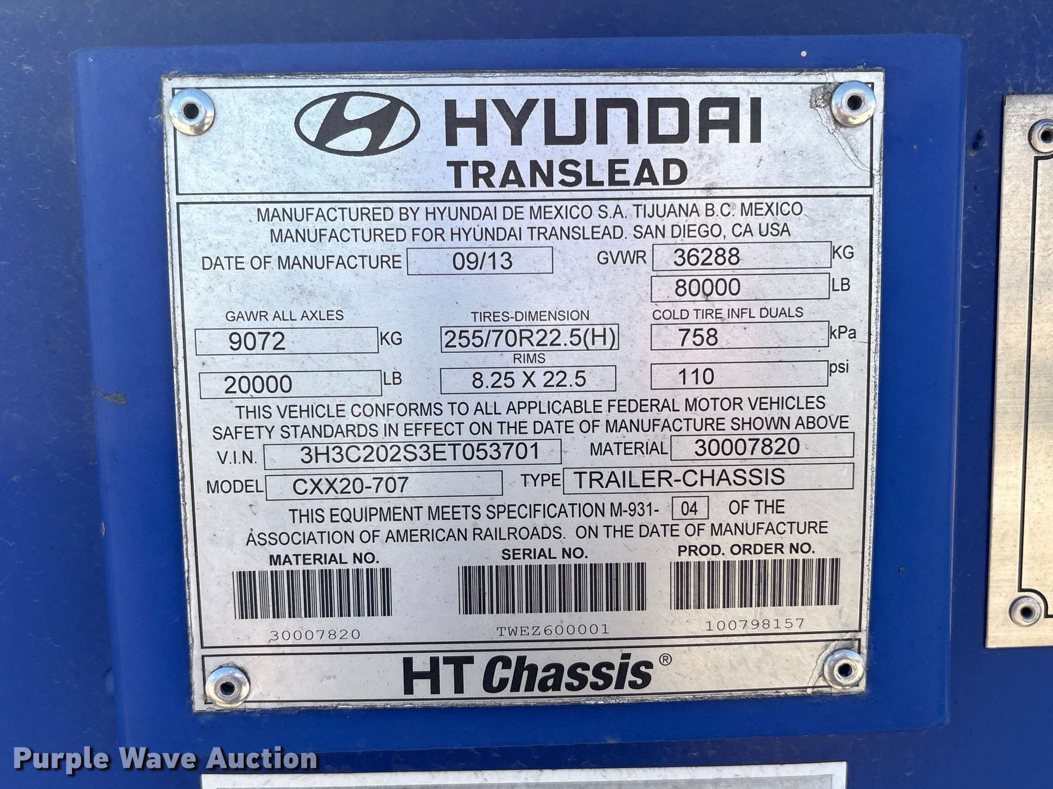 Take a look at this used 2014 Hyundai Translead container trailer being sold on April 22nd, 2026 in the Wednesday April 22 Vehicles and Equipment Auction made by Hyundai Translead. Take a look at all of the item information below or take a look at similar auctions for Trailers.