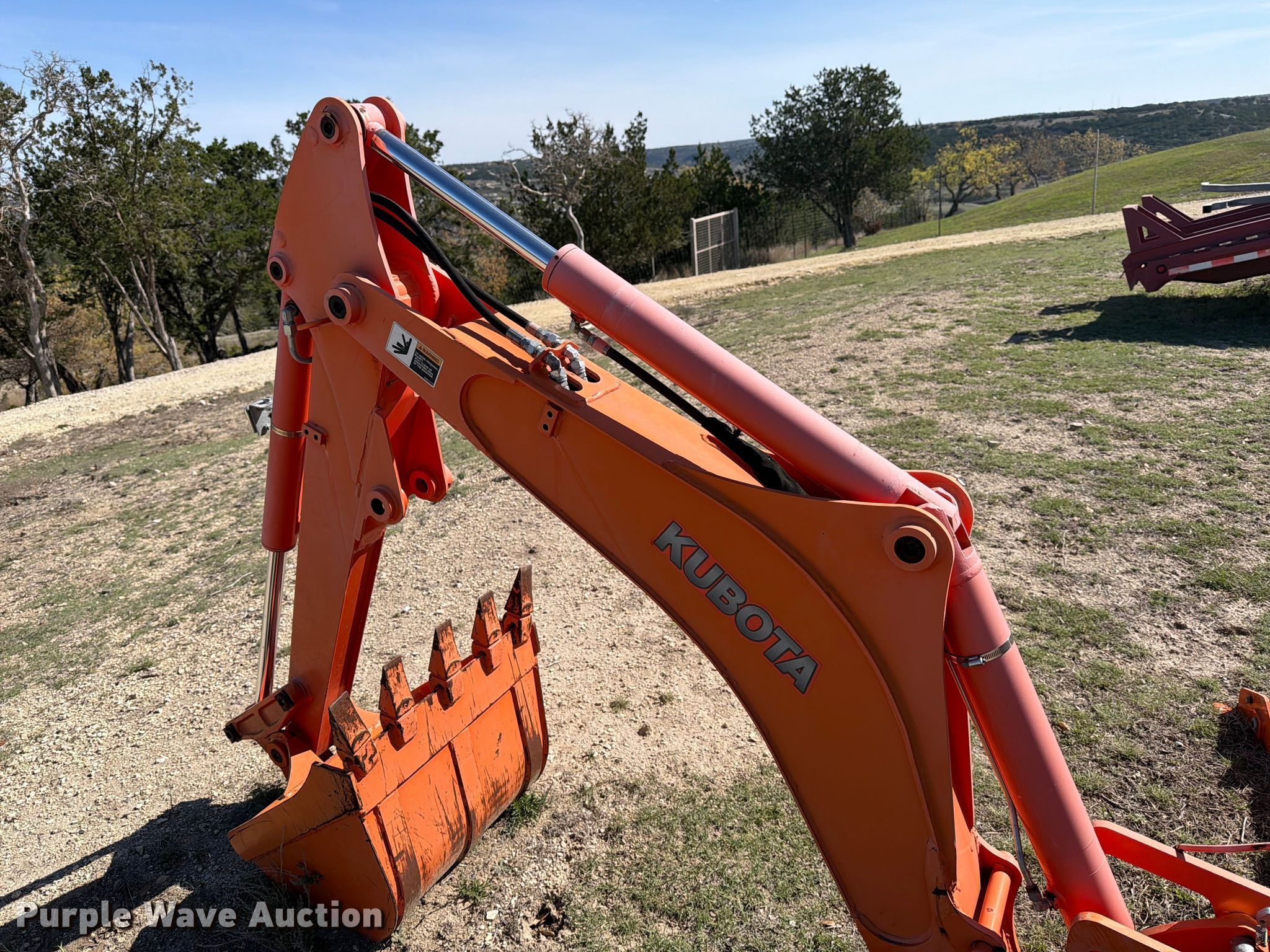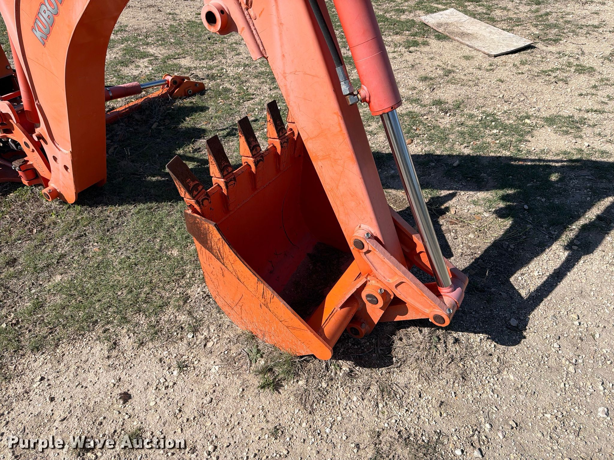Kubota BH92 backhoe attachment. Serial: A2293. Operator station Backhoe controls: Joystick, Hydraulic outriggers, Stick: 4', bucket Width: 24", Teeth: 5. S & S Bridge Painting, Inc... Kerrville, TX 78028
