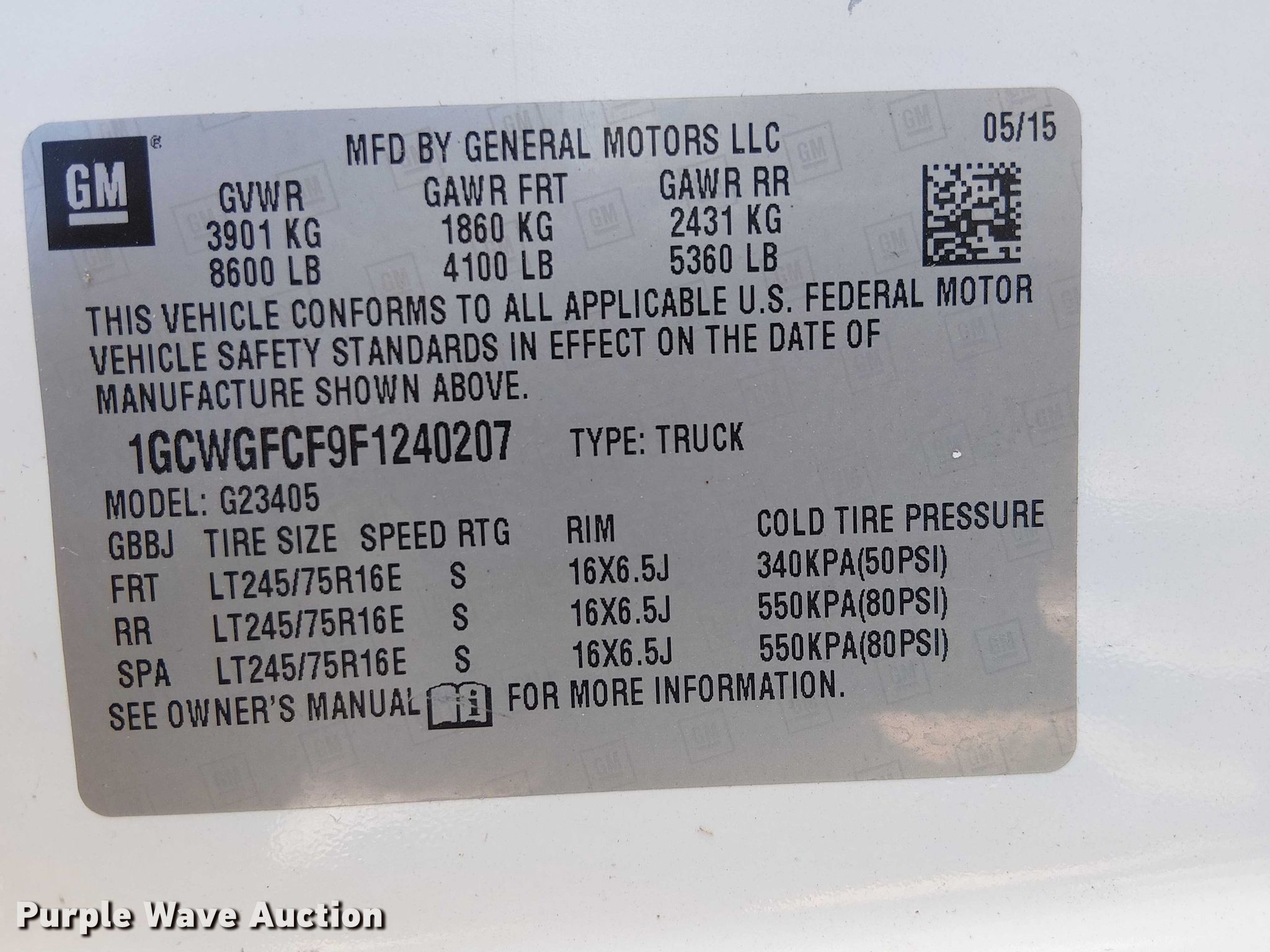 Purple Wave is selling a used 3/4 or 1 Ton Pickup or Van in Nevada. This item is a 2015 Chevrolet Express 2500 van with the following: Miles: 256,120 on odometer, VIN: 1GCWGFCF9F1240207